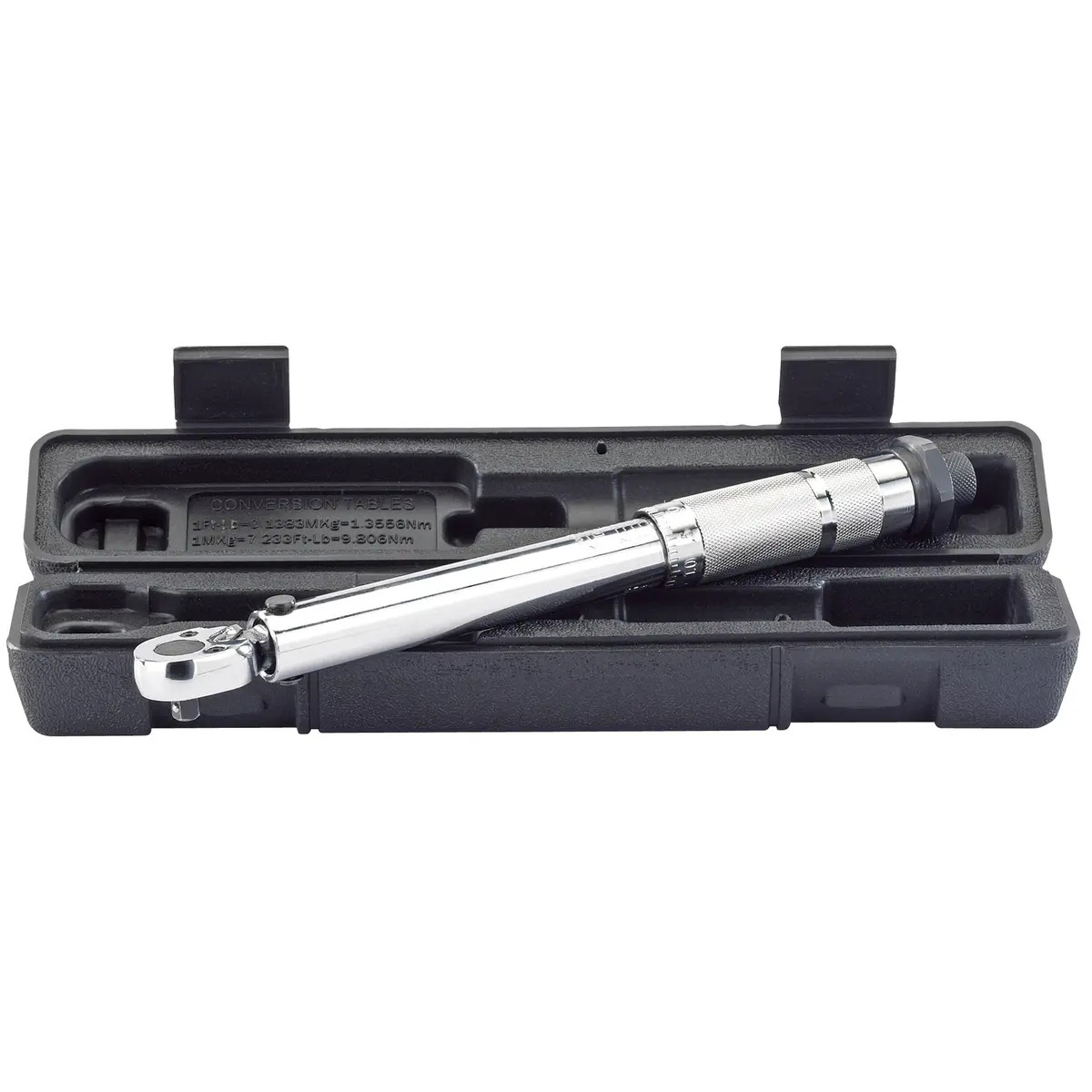 Easy to use torque wrench. The click-type operation and micrometer adjustment allow the user to apply the correct torque when required. The torque value range is 5 - 25Nm. Clockwise right-hand thread torque application only. Supplied in a blow mould case.