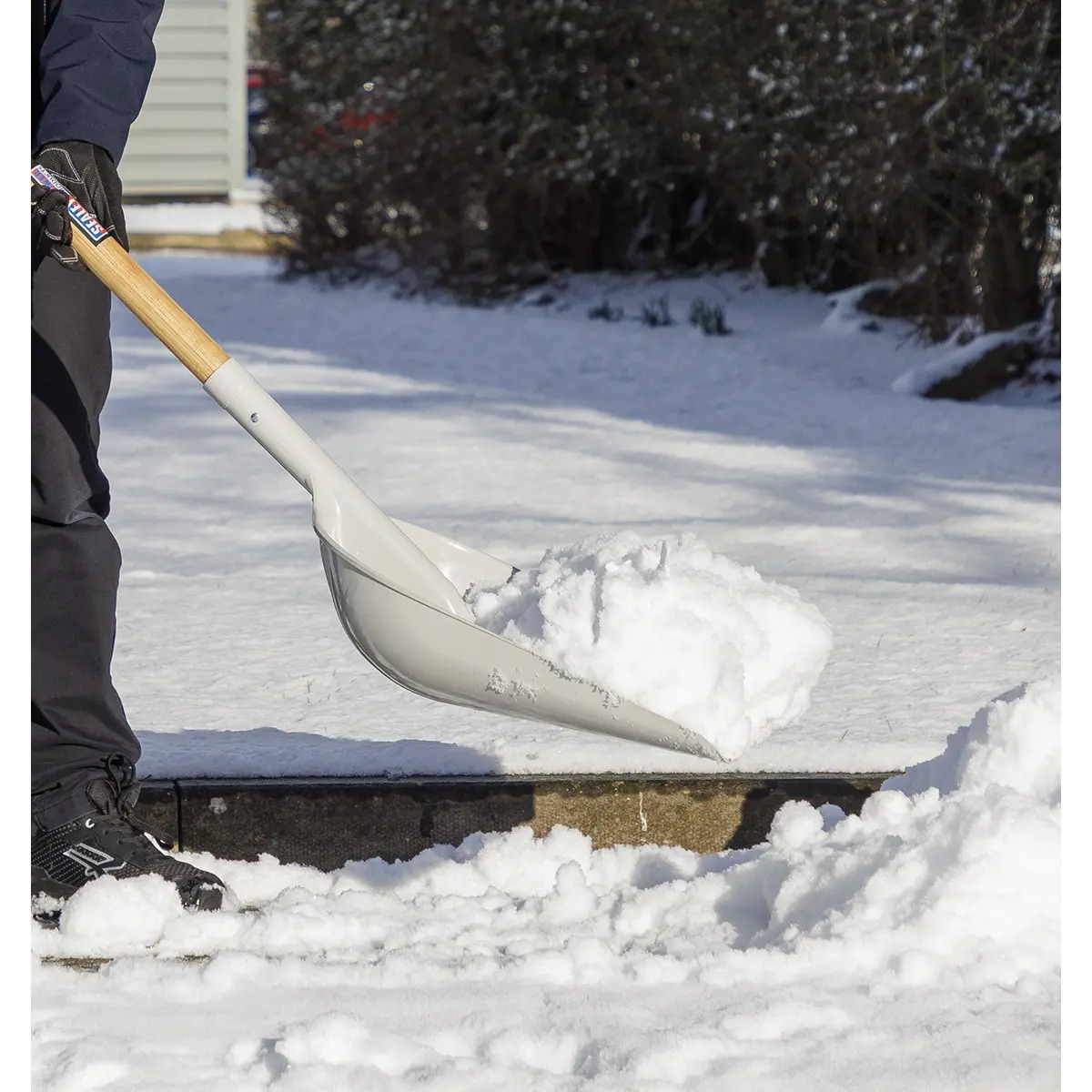 Heavy-duty spark-free shovel with hardwood shaft and YD handle. Large 365 x 470mm composite head ideal for use with snow, wood chips, compost, grain and debris.