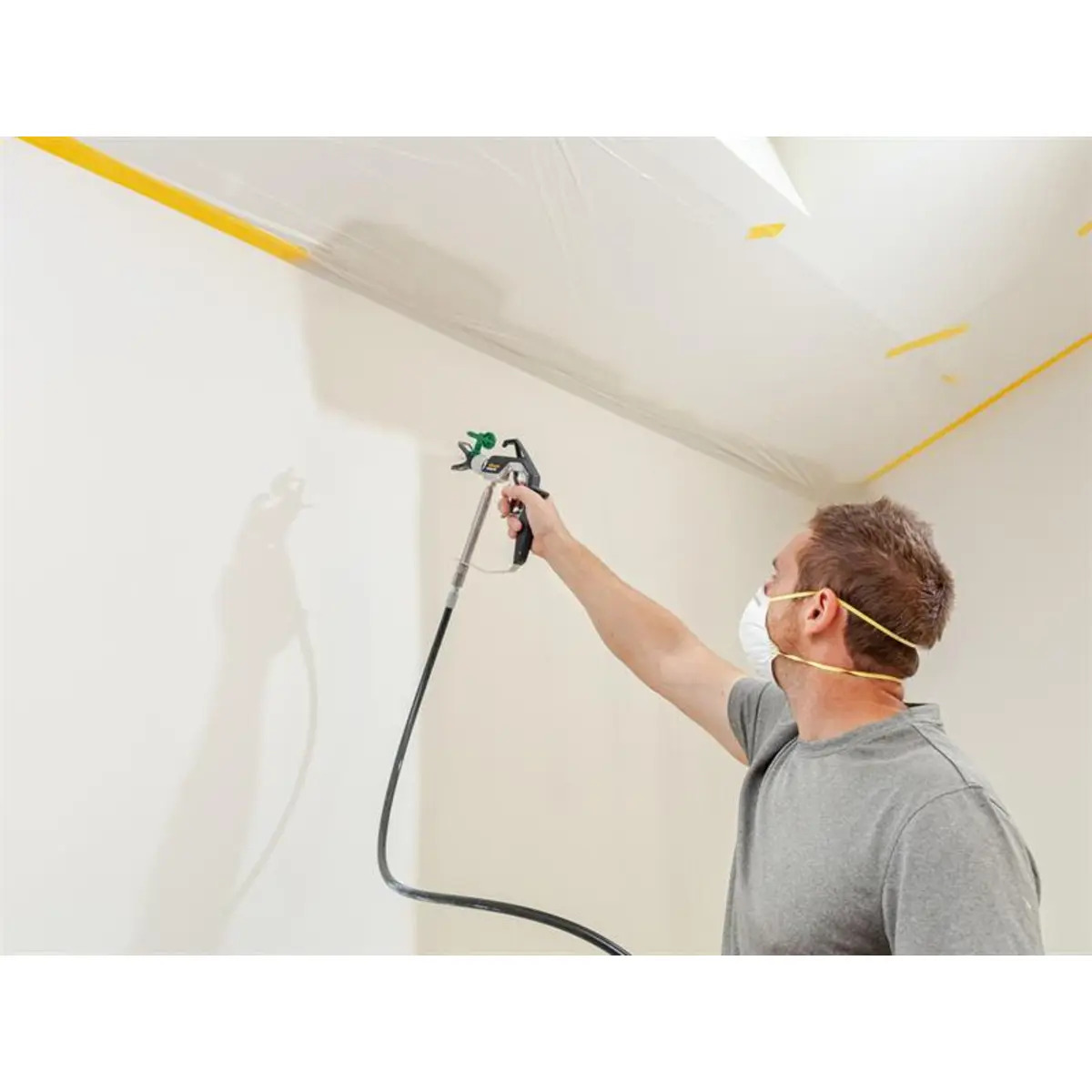 Equipped with High Efficiency Airless technology, the sprayer operates at lower pressure to improve control, extend pump life and reduce overspray by up to 55 percent. The innovative nozzle design produces a softer spray pattern for a more even finish, while the automatic valve depressor ensures safe operation and smooth start-up.