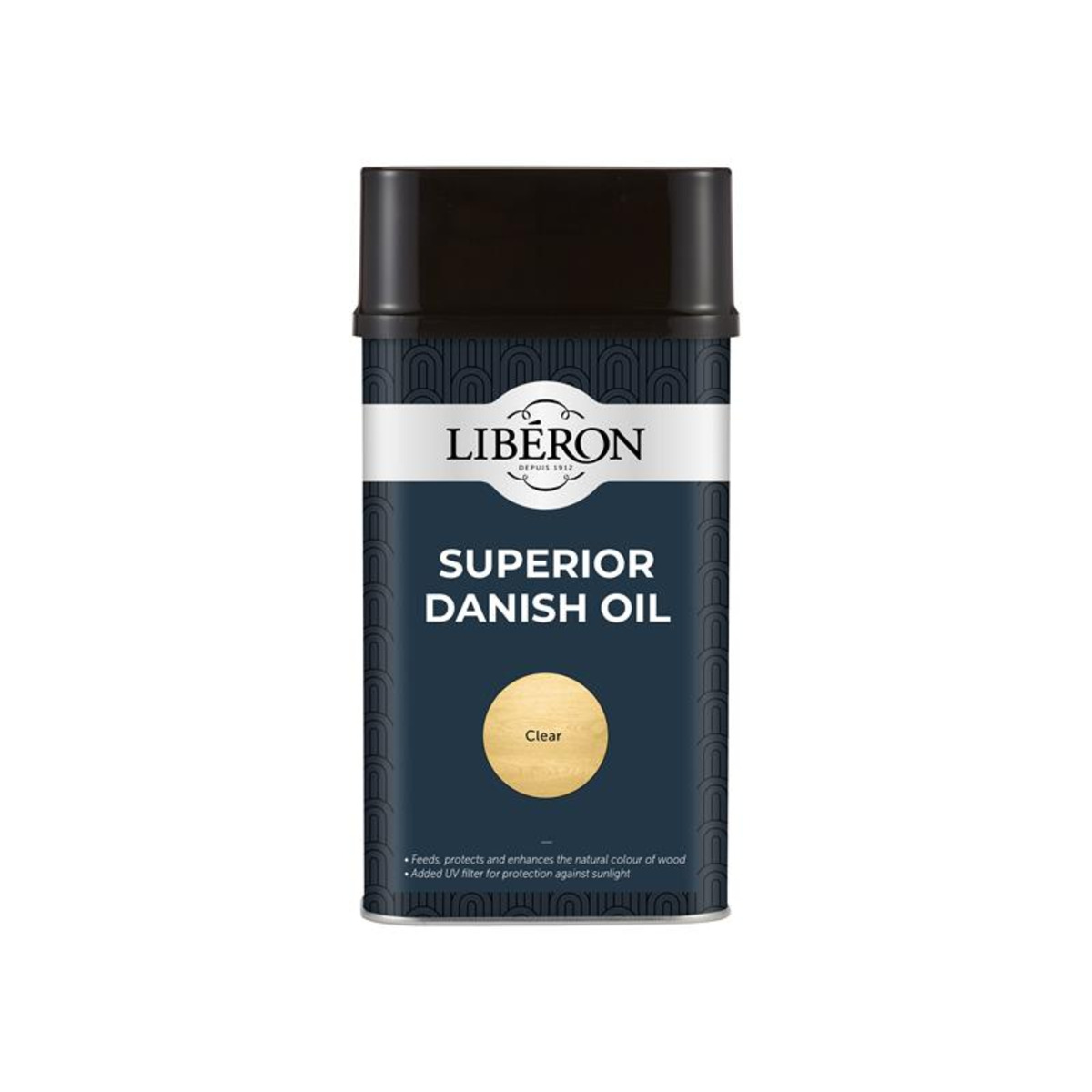 Pack Size: 1 litreLiberon Superior Danish Oil is a blend of pure tung oil and natural oils which feeds and protects hard and soft woods. It is a penetrating oil, which brings out the natural grain of the timber and provides a satin to gloss sheen. With added UV filters to help prevent discolouration from the sun, this oil is suitable for both interior and exterior use.