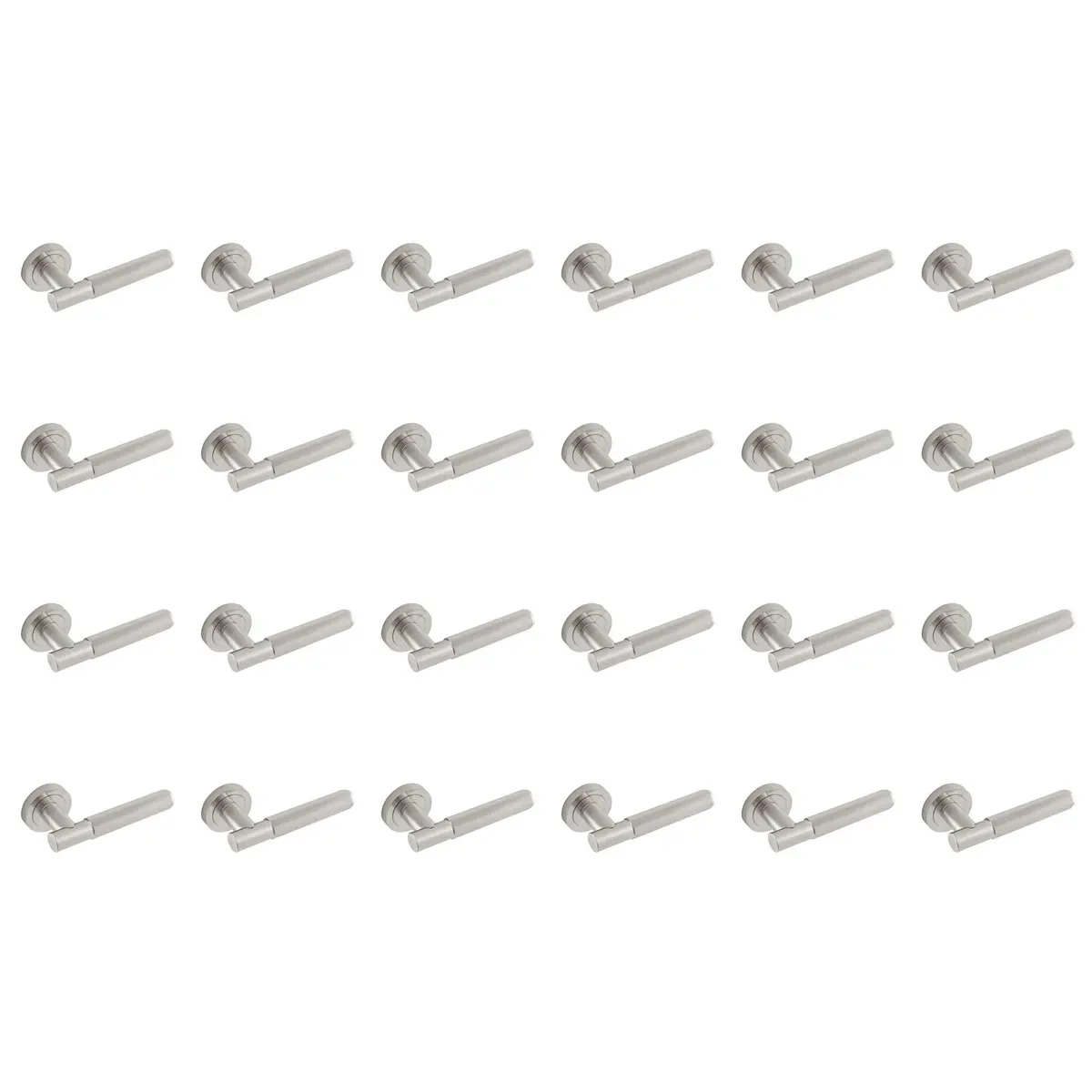 This pack of 24 is ideal for larger installs where a uniform look is key. Whether youre working on a full property fit-out or a multi-room refurb, these handles combine a modern satin nickel finish with fire-rated compliance. The screw-on rose with concealed fixings keeps everything neat once installed, while the sprung mechanism ensures a smooth, solid return in use.