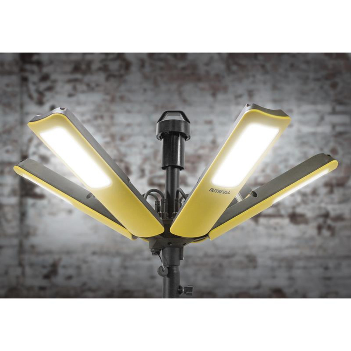 The Faithfull Centaur Heavy-Duty LED Site Light has a unique design that delivers a 360° spread of light, with a mighty 16,000 lumens and a 50m beam. This floodlight is ideal for use on worksites to light up entire rooms and large outdoor areas.