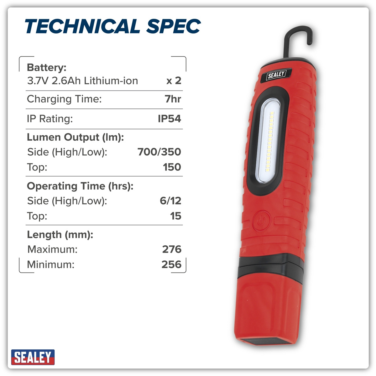 Sealey LED360PLUSR Rechargeable 360° Inspection Light 10W & 3W SMD LED - Red