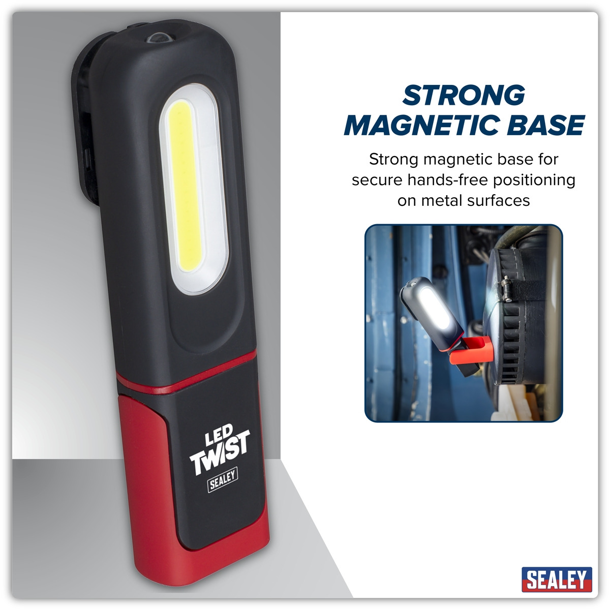Sealey LED317 LED Twist Rechargeable Inspection Light 3W COB & 3W SMD LED