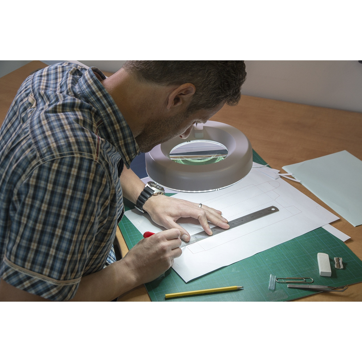 POWERFUL MAGNIFICATION - Three dioptre 120mm precision lens gives high quality magnifying capabilities. BRIGHT - 48 SMD LEDs illuminate the object for improved detailed work. EASY POSITIONING - Multi-position swing arm allows simple positioning of lamp to suit task. SECURE FIXING - Features a G-clamp base to secure to a workbench or table. VERSATILE - Ideal for electrical engineers, engravers and fine detail work. MAINS POWERED - Supplied with BS power adaptor.
