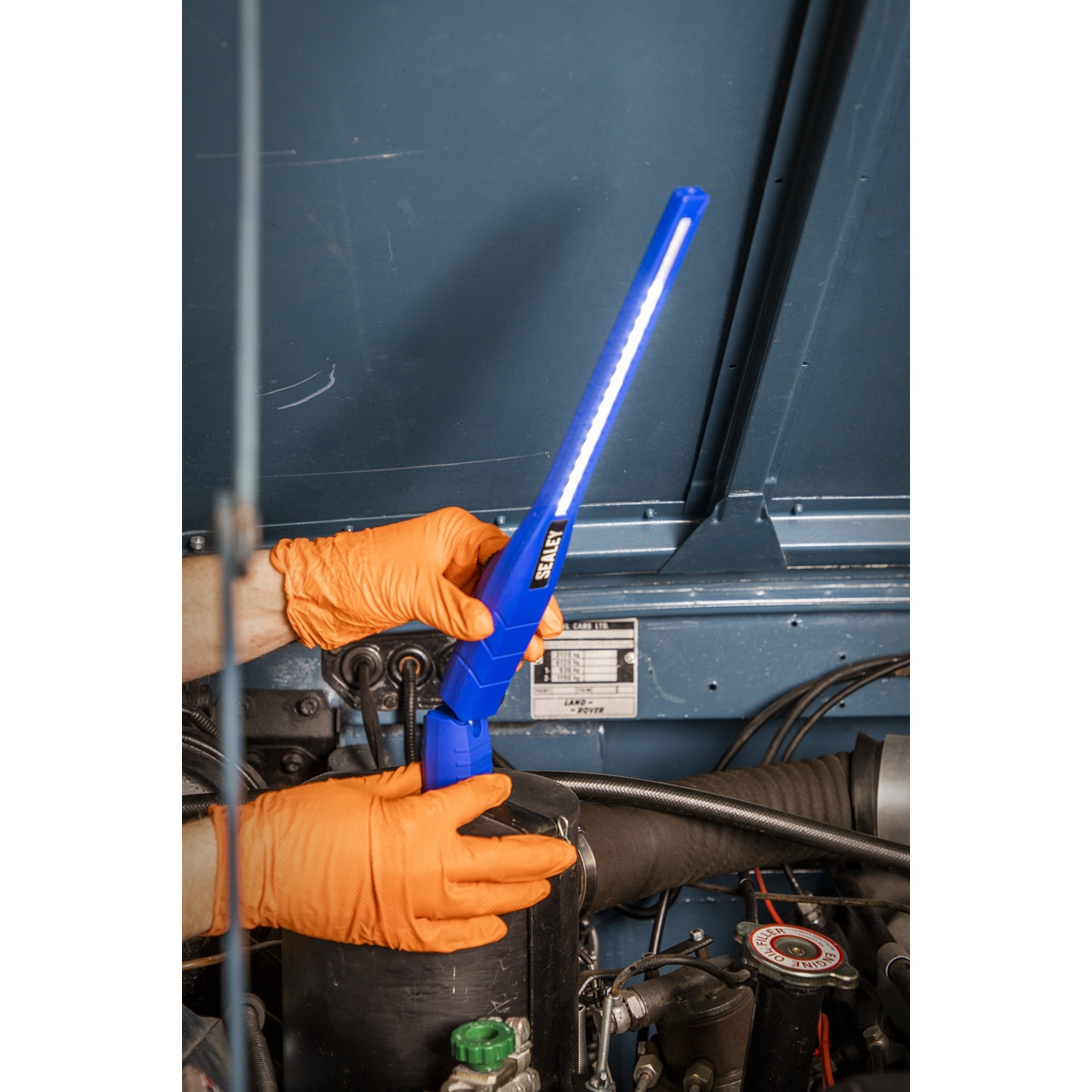 Unique and innovative 360° swivel and tilt function enables the light source to be positioned in any direction. Exclusive patented design owned by and registered to Sealey. Features super bright SMD LEDs providing up to 600 lumens through the adjustable rotary switch and a 1W LED directional torch. Includes a four LED UV Light. Wavelength: 390-405nm (UVA). Slimline design with minimum thickness of 9mm. Features a single hanging hook, magnetic base allowing hands-free operation and battery level indicator. High quality 2.6Ah 3.7V lithium-ion battery for longer life, no memory effect and a much slower discharge than traditional Ni-MH batteries. Supplied with a high quality braided USB lead.