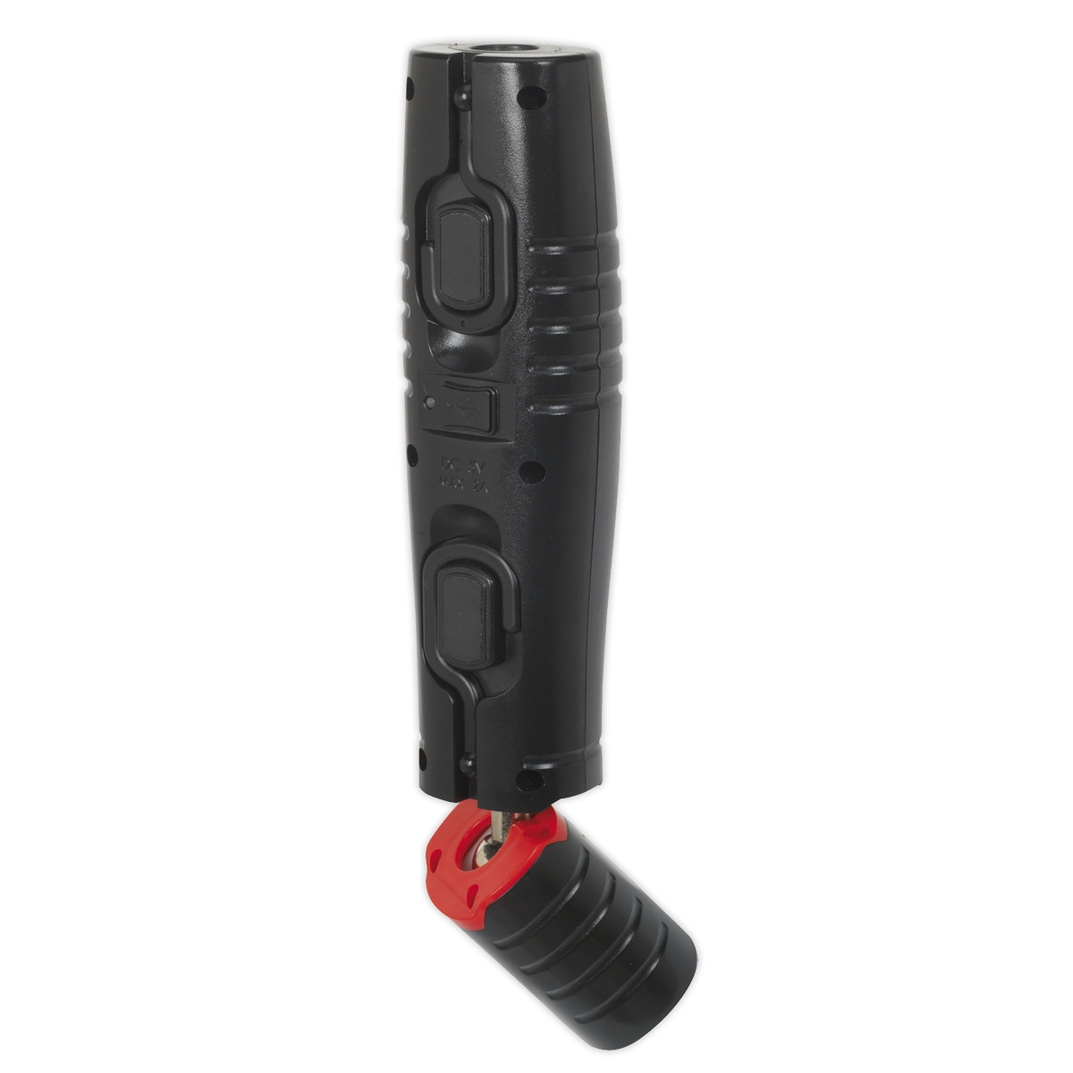 Unique and innovative 360° swivel and tilt function enables the light source to be positioned in any direction. Exclusive patented design owned by and registered to Sealey. 4W SMD LED providing up to 400 lumens output with 120° spread of light, illuminating the whole work area. Includes an additional high power 3W LED directional torch. Features two swivel hooks and three rubber covered magnets, two on the rear and one on the end, which allow hands-free operation. High quality 2.2Ah lithium-ion battery for longer life, no memory effect and a much slower discharge than traditional Ni-MH batteries. Micro USB charging port. Supplied with USB cable. Operating Time Side (High/Low)/Top: (3/7)/8hr. Charging Time: 3.5hr. Min./Max. Length: 255/270mm.