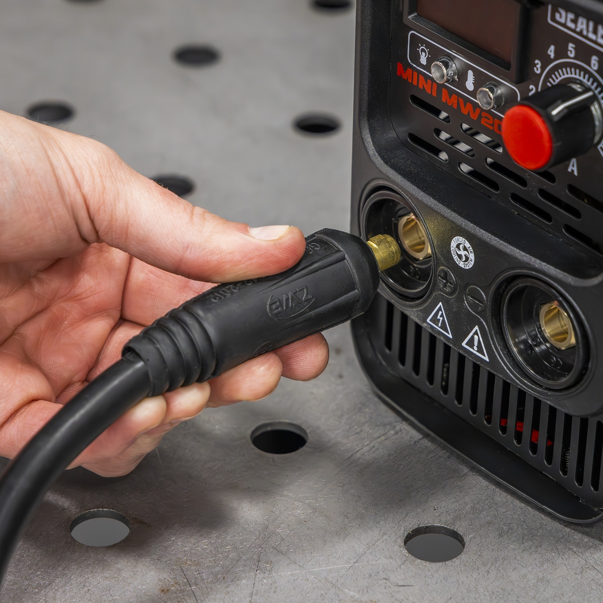 - SUPPLIED WITH - Supplied with 1.6m 25mm² cable with electrode holder and a 1.4m 25mm² earth clamp and cable, both with 10-25 dinse connectors.