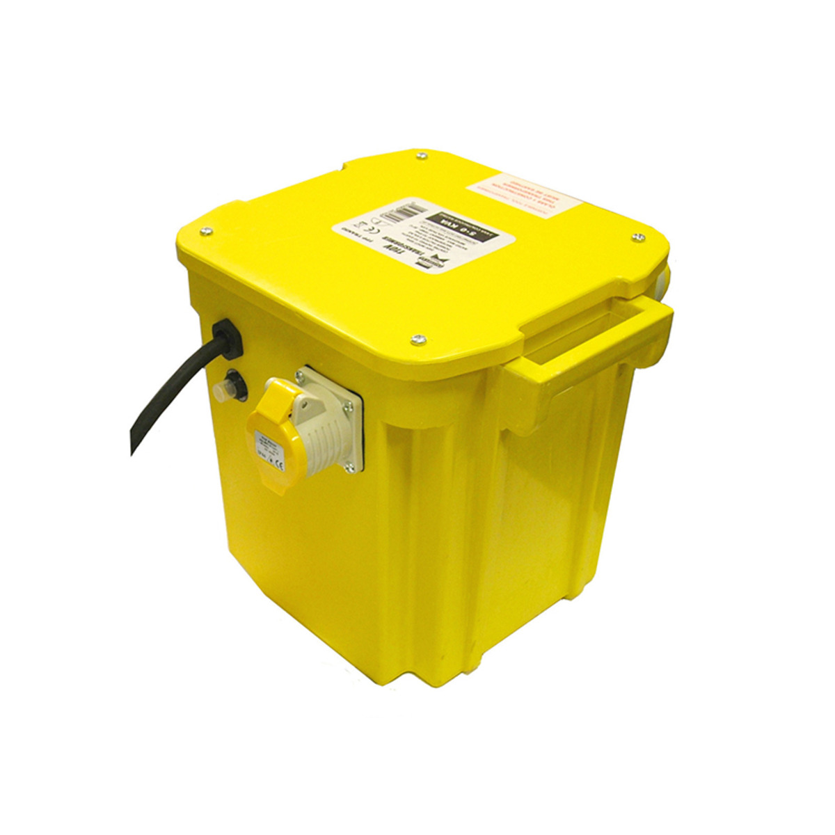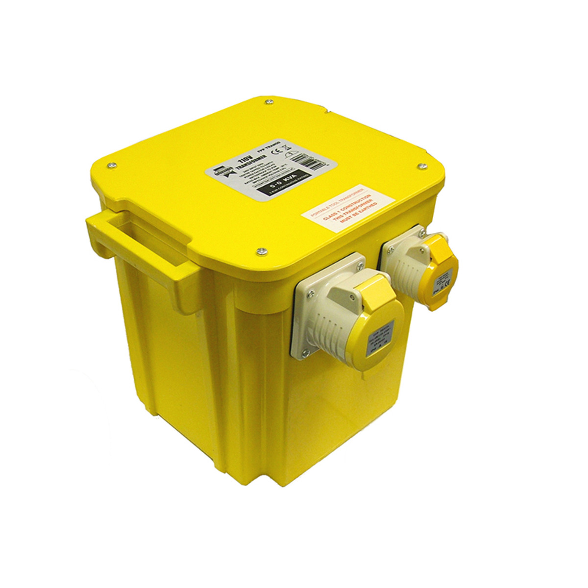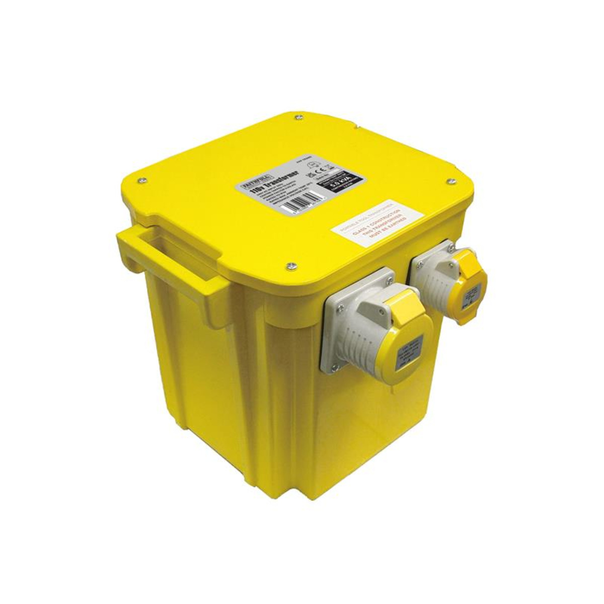 This 110V transformer has 3 outlets 2 x 16 amp and 1 x 32 amp and has a heavy-duty GRP waterproof case which is rated to IP44, making it fully weatherproof and therefore suitable for use in most types of outdoor and worksite conditions.