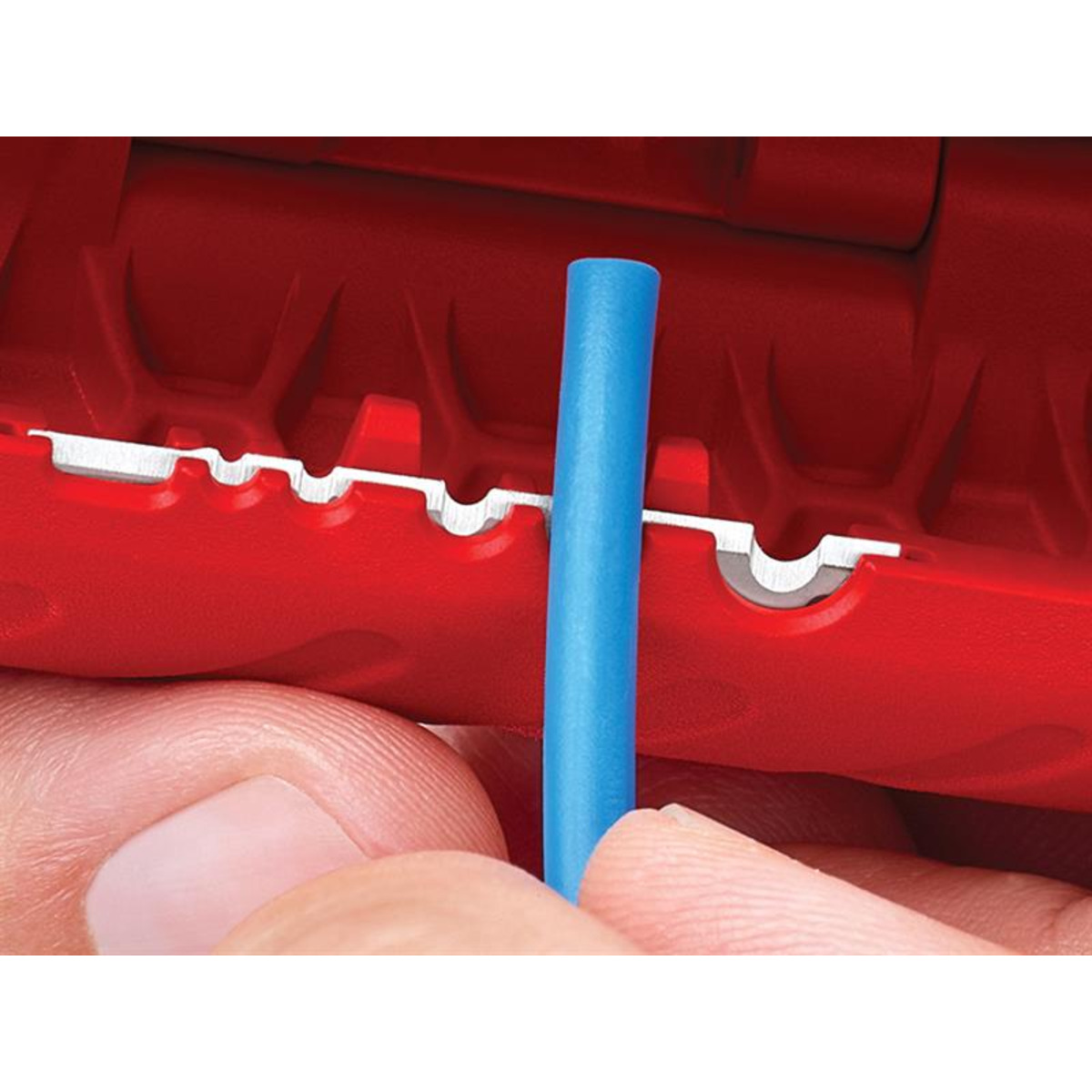 The slim ergonomically designed body is made of a robust polyamide compound plastic whilst the double-sided guide ensures a precise cut. There is also a practical wire stripper.