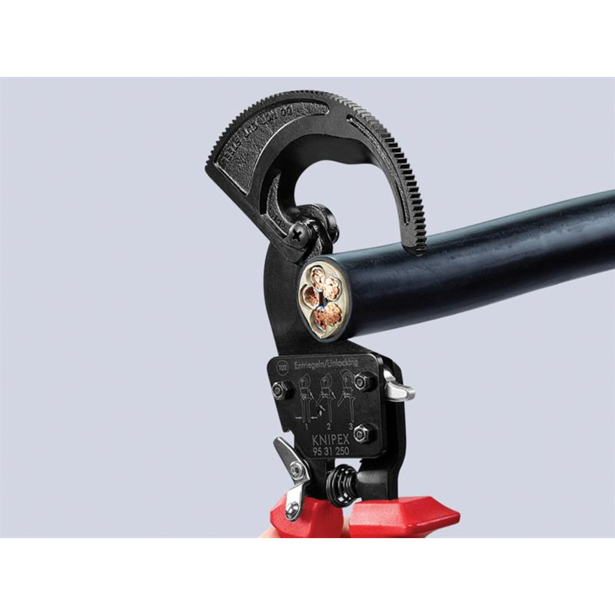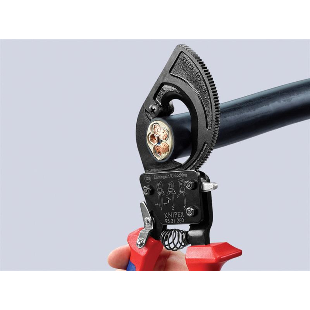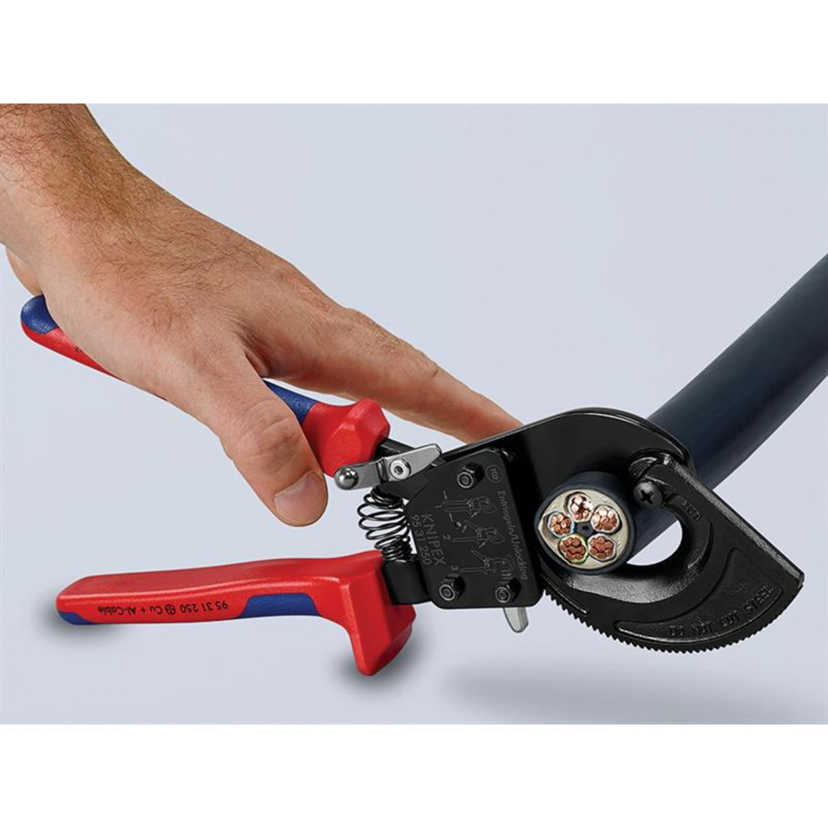 KNIPEX KPX9531250 95 31 250 Ratchet Action Cable Cutter Multi-Component Grip 250mm