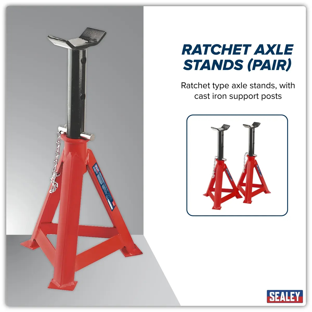 Sealey AAS10000 Auto Rise Ratchet Axle Stands (Pair) 10 Tonne Capacity per Stand