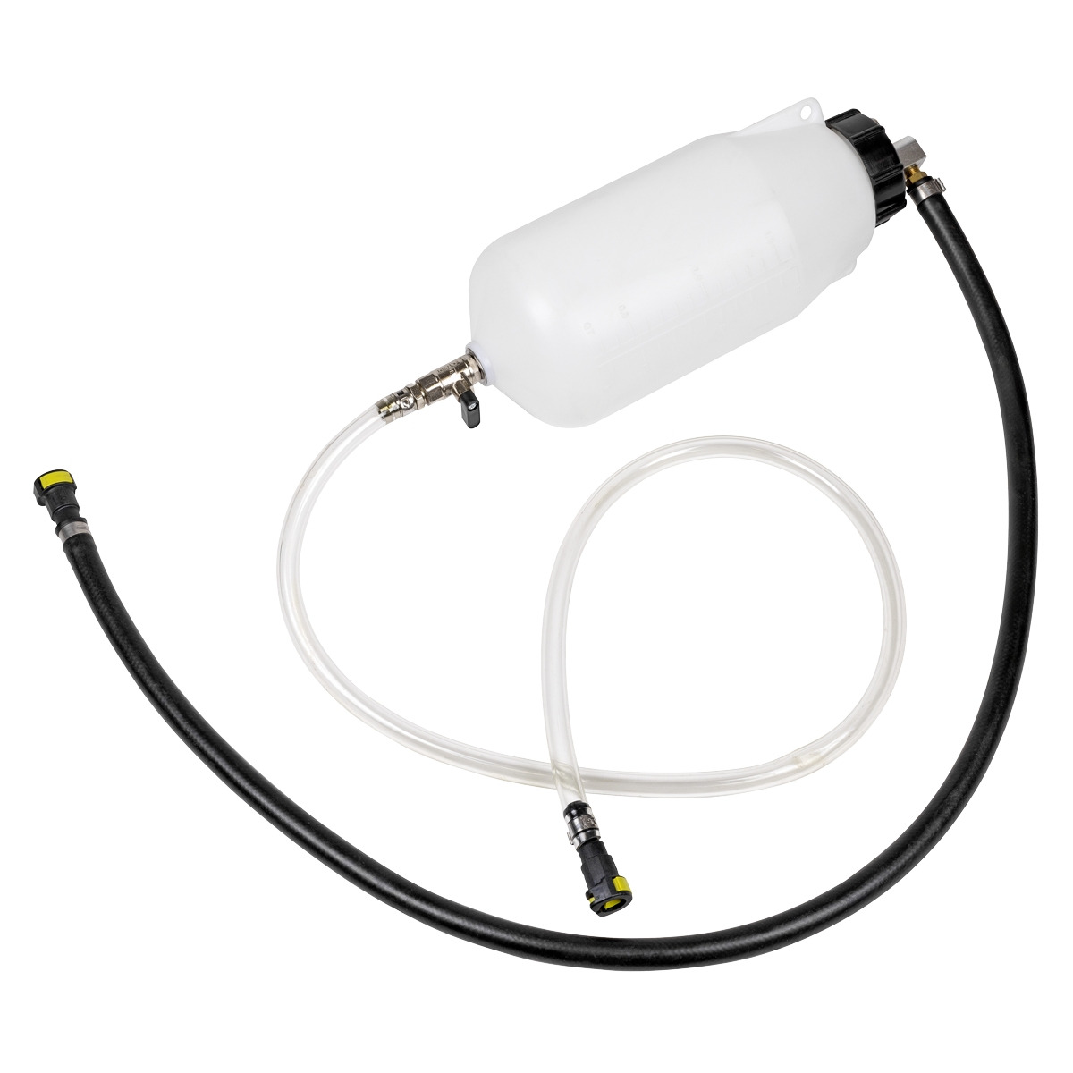 LARGE 1.5L TANK – Will give enough runtime to perform diagnostics. FUEL DELIVERY AND RETURN PIPE – That connects to the low-pressure side of the fuel system. IDEAL FOR BYPASSING THE FUEL TANK – When fuel contamination is suspected. SUPPLIED WITH 10 FUEL LINE CONNECTORS – Ensuring the VS666 is compatible with most petrol and diesel passenger and light commercial vehicles. CAN ALSO BE USED FOR MOTORCYCLE MAINTENANCE - Eliminates the need to balance the fuel tank in an awkward positions. HOSE LENGTH - 1m delivery, 1m return.