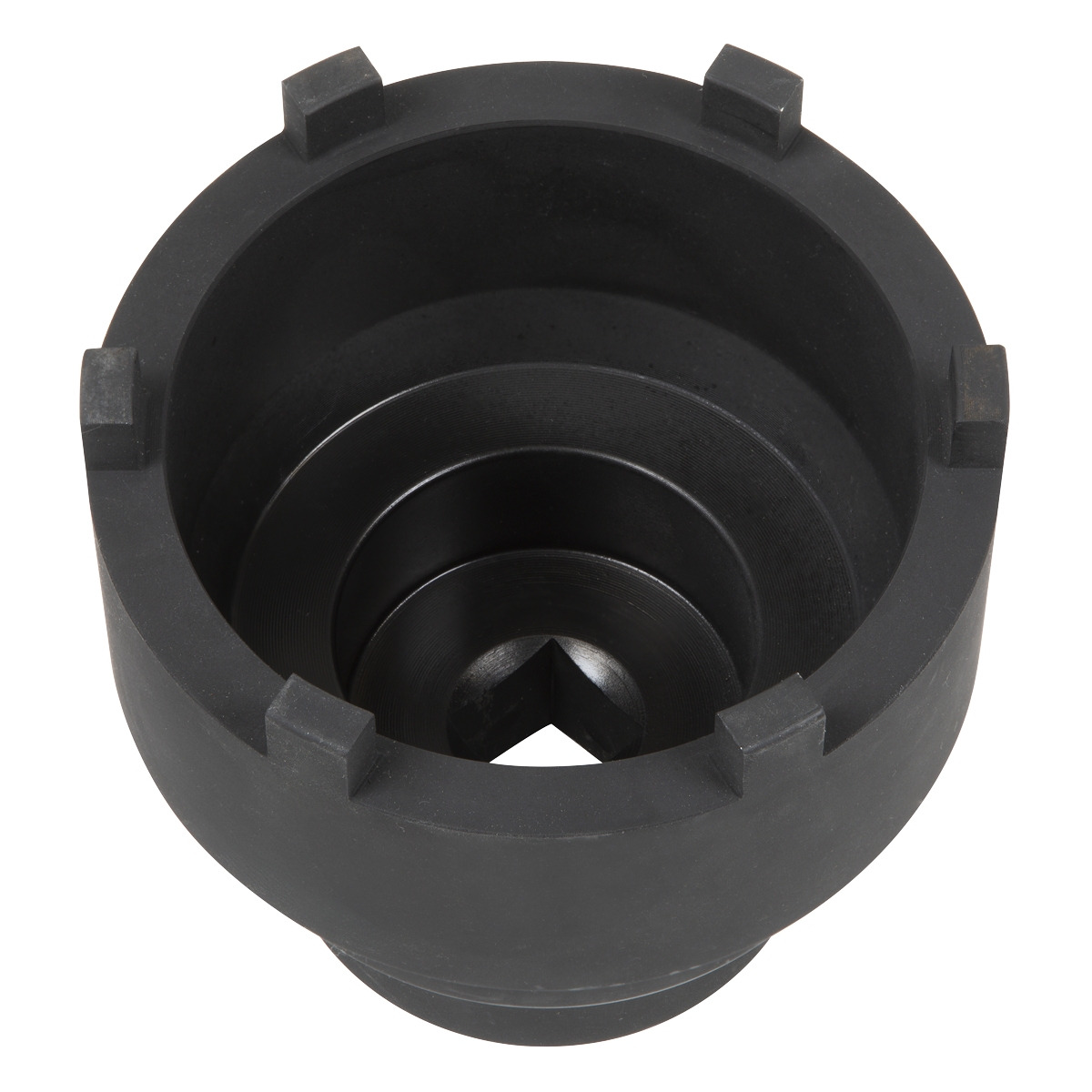 DROP FORGED CHROME MOLYBDENUM STEEL – For strength and durability. 6 STUD IMPACT SOCKET – Designed for the removal of rear and trailer axle nuts on MAN/Mercedes-Benz commercial vehicles. BLACK PHOSPHATE FINISH – For added corrosion resistance. APPLICATIONS – 3/4”Sq Drive 95-115mm.