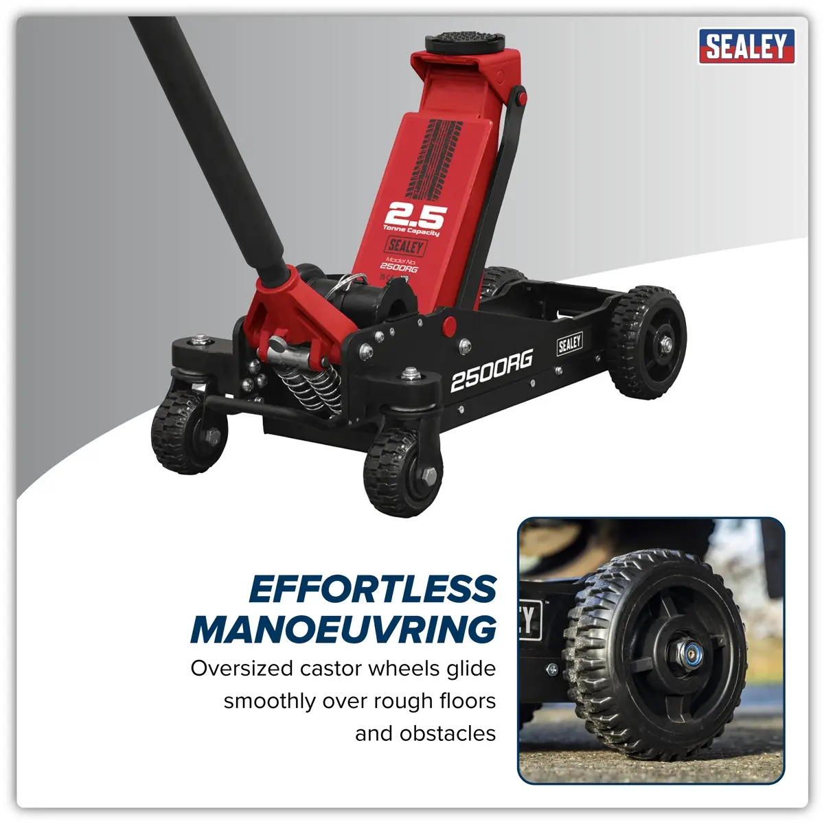 Sealey 2500RG Big Wheel Hybrid Trolley Jack for Off-Road Vehicles, SUVs, Vans & 4x4s with Super Rocket Lift 2.5 Tonne