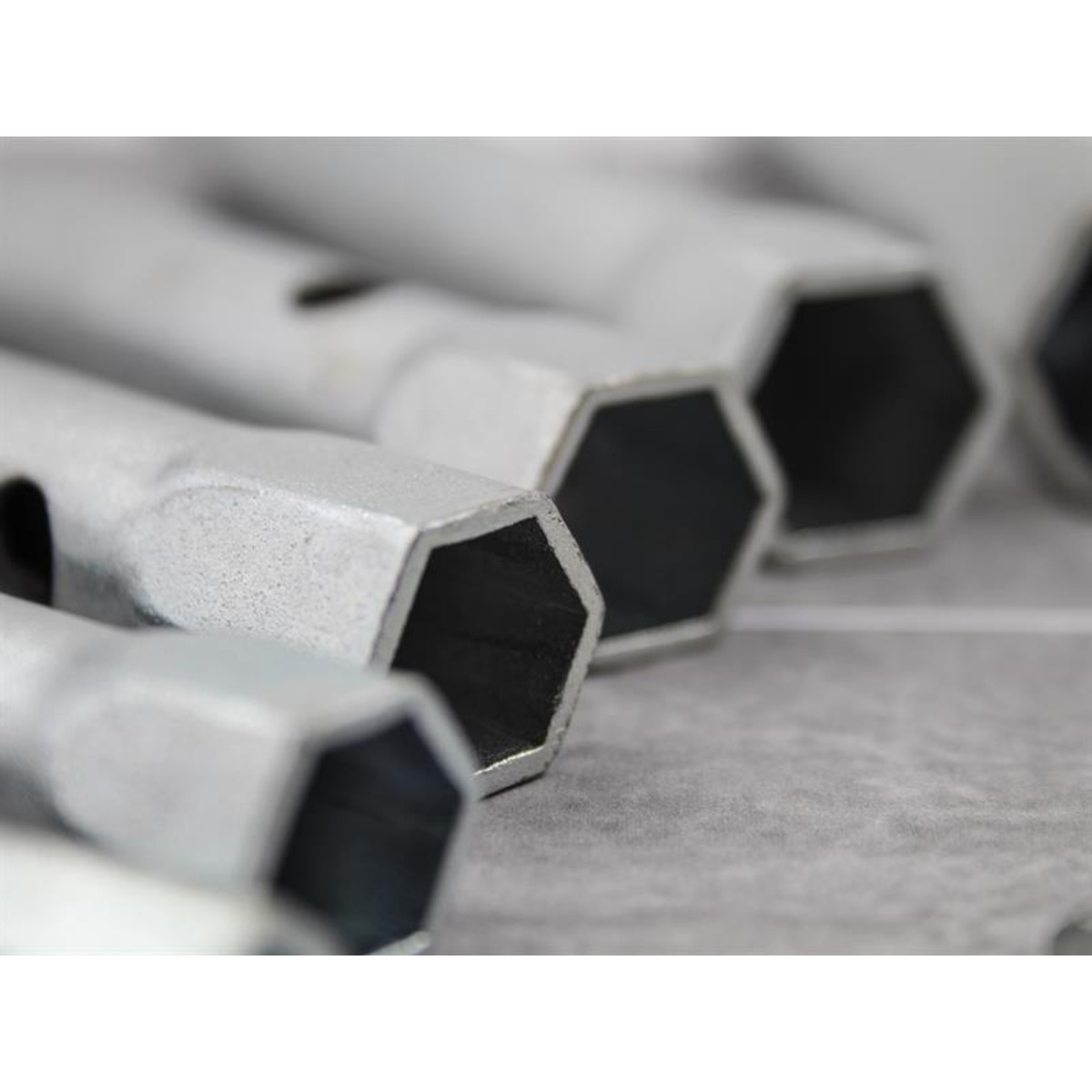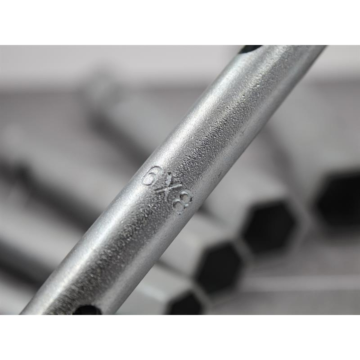 6 Piece Faithfull Box Spanner Set. Includes the twelve most popular sizes which are ideal for use by both tradesmen and home users. These spanners are particularly suitable for automotive repair jobs and plumbing maintenance work and include most of the commonly used spanners for plumbing backnut applications. This set contains: 1 x 8mm & 9mm Box Spanner. 1 x 10mm & 11mm Box Spanner. 1 x 12mm & 13mm Box Spanner. 1 x 14mm & 15mm Box Spanner. 1 x 16mm & 17mm Box Spanner. 1 x 18mm & 19mm Box Spanner. 1 x Tommy Bar.