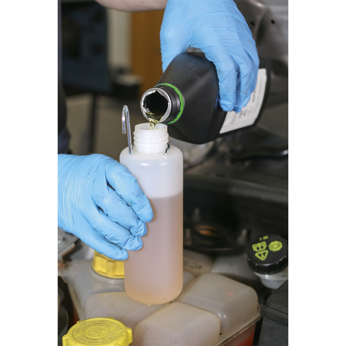 - Bottle holds 400ml of hydraulic fluid.