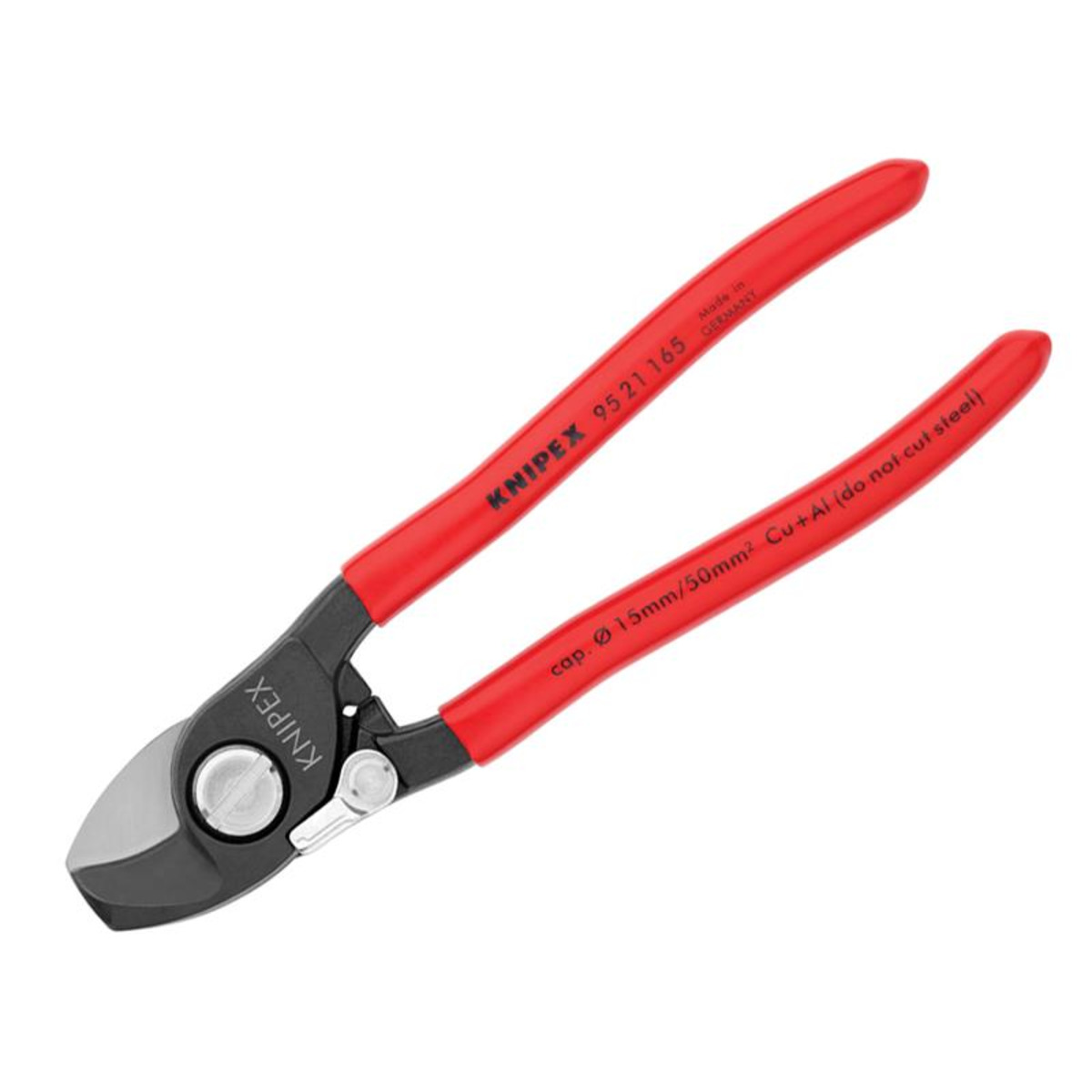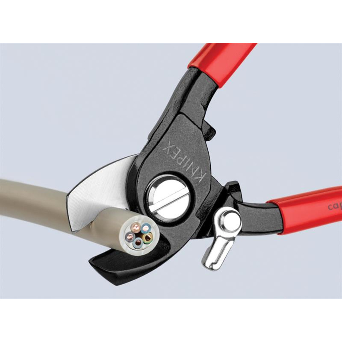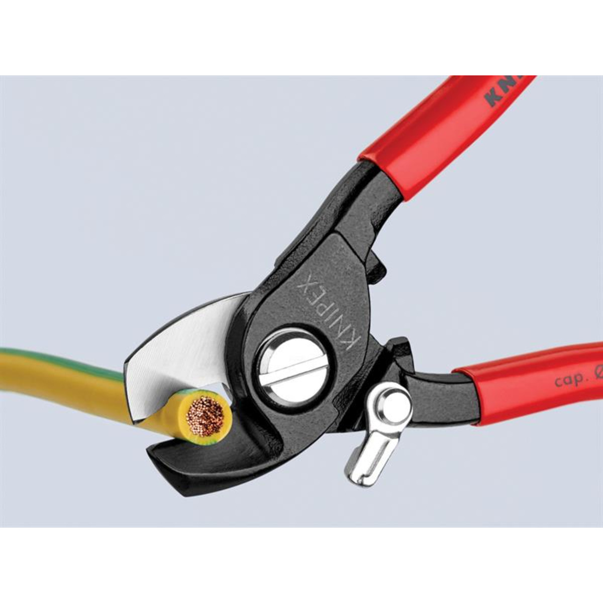 Cutting Capacity: Ø15mm / 50mm²Knipex 95 Series Cable Shears with plastic coated handles. Made from high-grade vanadium special tool steel, that has been forged and then oil-hardened, for a longer, robust working life. Precision ground and hardened blades for cutting copper and aluminium cables without crushing or deforming, as well as multiple stranded cables.
