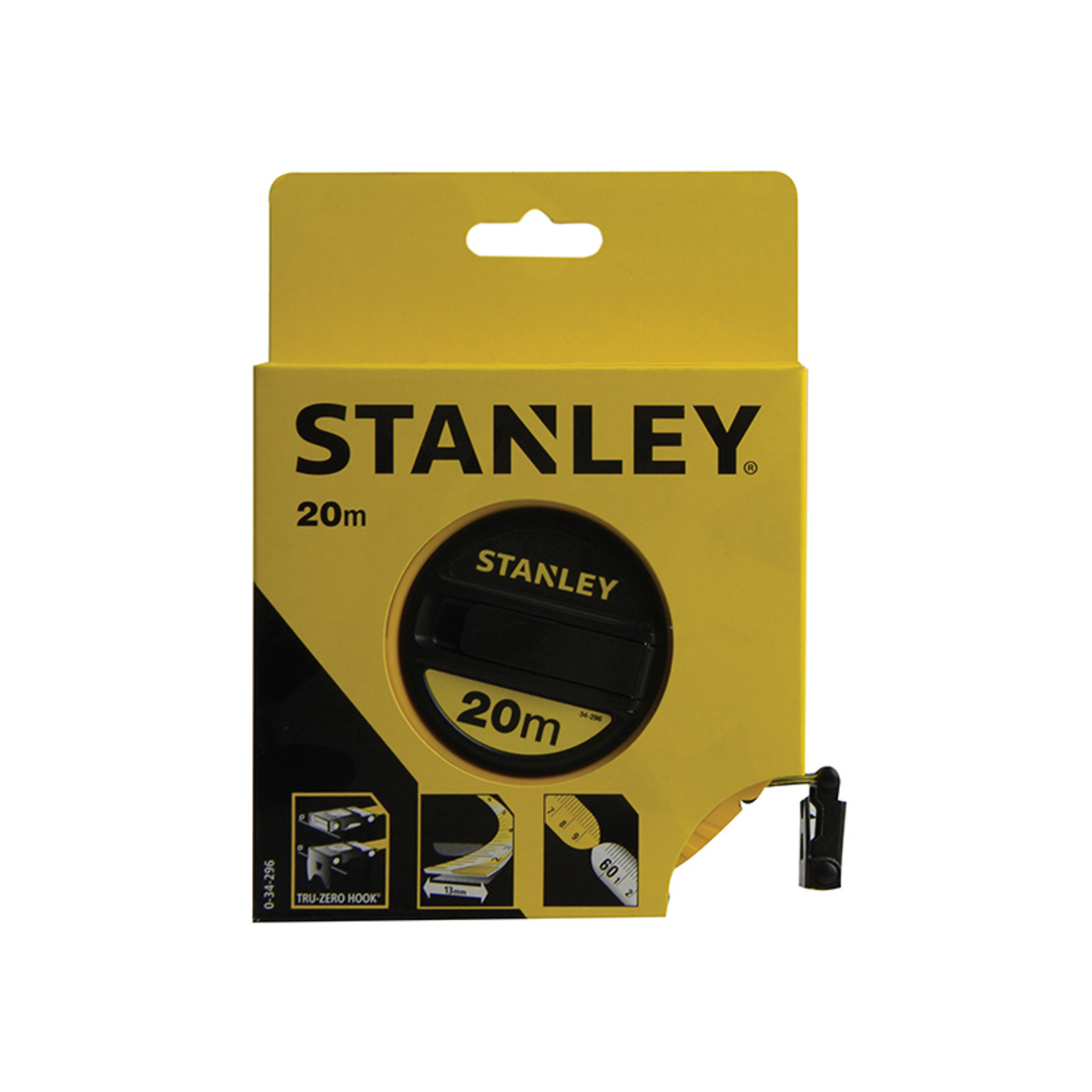 This Stanley Closed Case Fibreglass Long Tape has metric measurements only, with 2mm graduations for precise measuring. Blade Length: 20m Blade Width: 13mm Accuracy: EC Class III