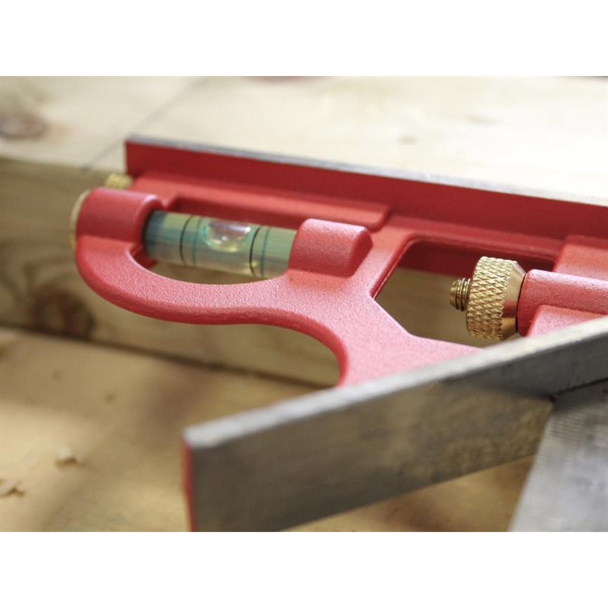 Multipurpose Combination Square for use in both wood and metalworking applications. Each square features a high quality cast and machined sliding stock, fitted with a stainless steel rule engraved with both imperial and metric graduations, a spirit level and marking scribe.
