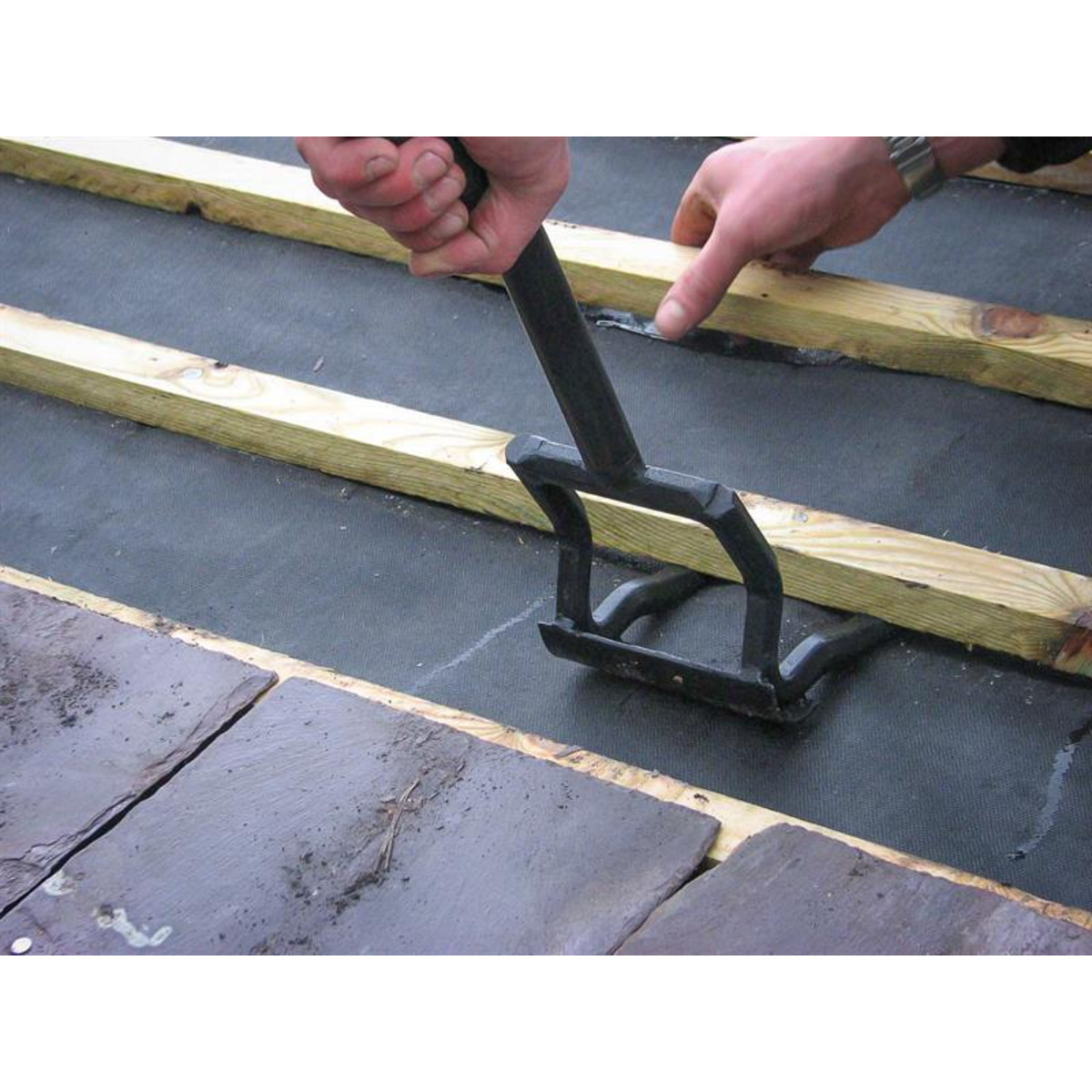 The Roughneck Roofing Demolition & Lifting Bar is ideal when working overhead, such as taking down ceilings, ripping off roof laths and working in confined spaces. The tusks are hardened and tempered and the heel rounded to distribute pressure over a larger area.