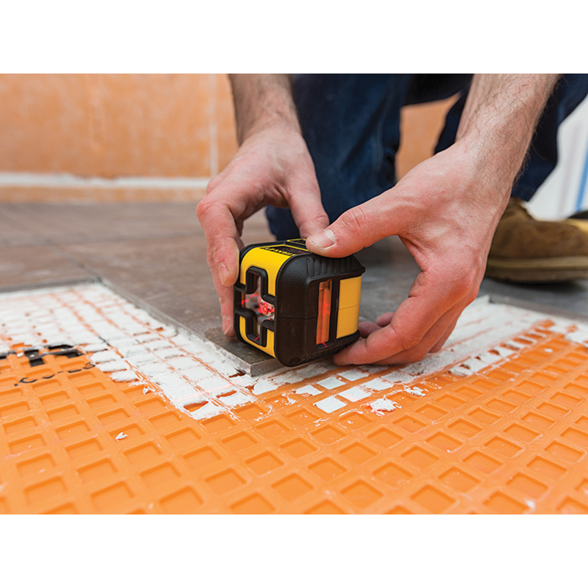 The Stanley Intelli Tools Cross90™ Red Beam Laser is self-levelling and projects a 100° vertical beam, horizontal beam and an additional 90° vertical beam. The 90° beam is ideal for tile or flooring installation or to lay out partition walls with ease.
