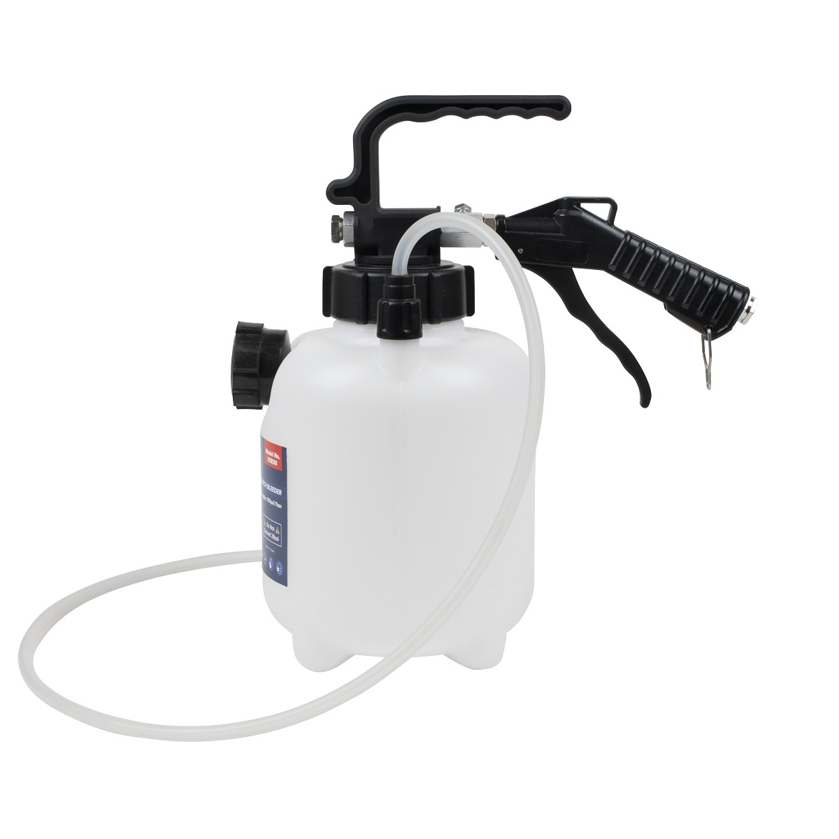 ONE-PERSON OPERATION - Professional pneumatic brake and clutch bleeding tool. LARGE 2.5L RESERVOIR - Flush the entire system with one fill, without the risk of running the reservoir dry. PRESSURE RANGE - Suitable for use with ABS systems. Ø45MM CAP WITH 90° ANGLED CONNECTOR - This is suitable for most European models.