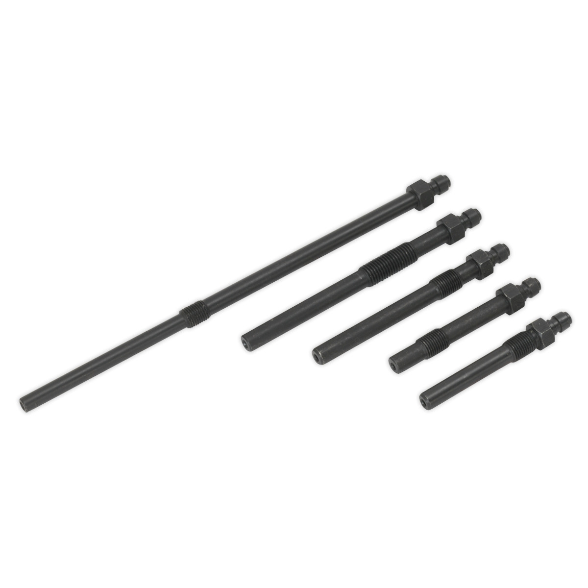 Diesel engine glow plug compression test adaptor kit that covers a wide range of Alfa Romeo, Fiat, Honda and Vauxhall/Opel vehicles. Some of these adaptors are also suitable for other manufacturers. For use in conjunction with Sealey Diesel Compression Gauge, Hose & TDC Base Kit (Model No. VSE3157).