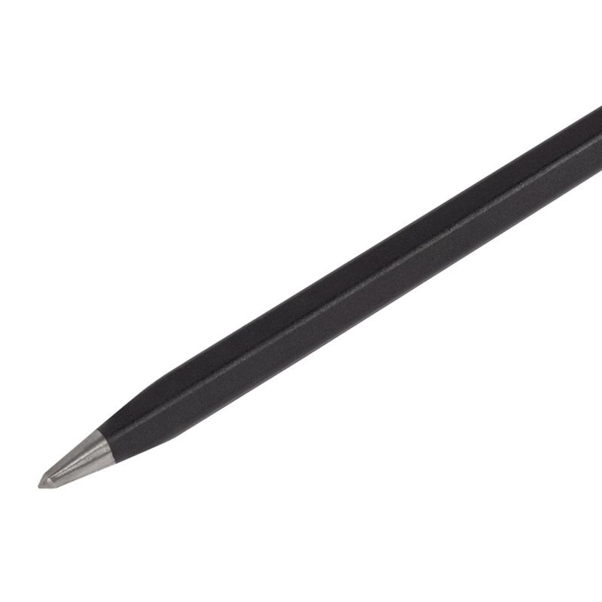 These Roughneck Digging Bars have a drop-forged steel construction with heat-treated working areas, and a black finish with polished tips. They have a chisel blade for general prying and breaking, and a pointed tip for breaking stone and concrete.