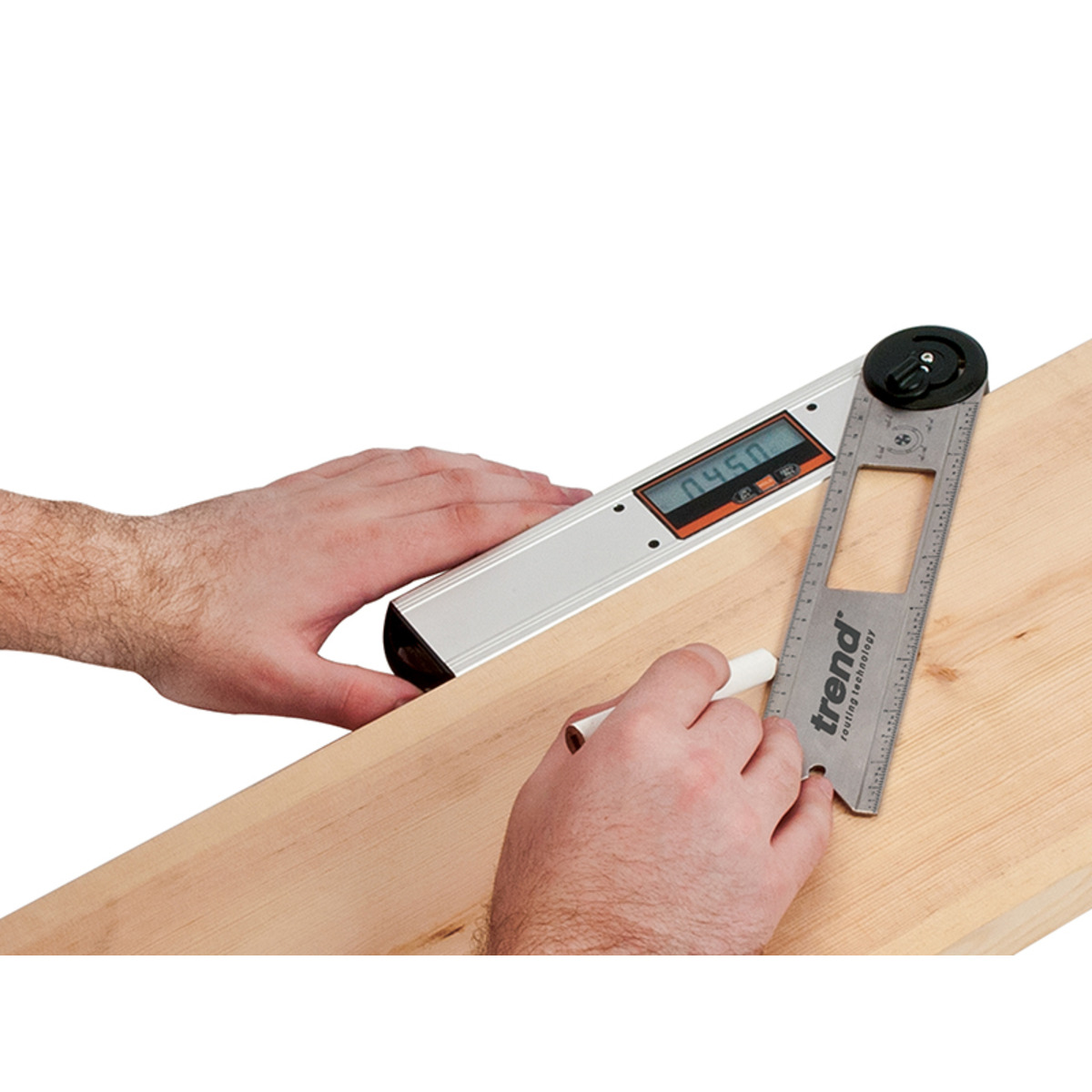 The Trend DAF/8 Digital Angle Finder has a large LCD display with digital readout to allow easy reading of angles. It calculates angles from 0-220° and up to 360° when the locking knob is removed. Ideal for measuring internal and external angles quickly.