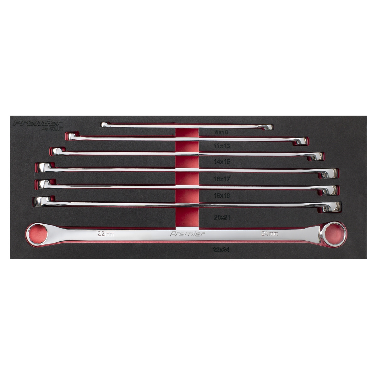 SEALEY PREMIER TOOL TRAYS - One of a comprehensive range of Premier Hand Tools, suitable for daily professional use. DURABLE - Extra-long, drop-forged, Chrome Vanadium steel 12-point WallDrive® ring spanners. SIZES - Sizes: 8 x 10, 11 x 13, 14 x 15, 16 x 17, 18 x 19, 20 x 21, 22 x 24mm. ORGANISATION - Supplied in EVA foam tray for easy storage and quick tool selection. LIFETIME GUARANTEE*.