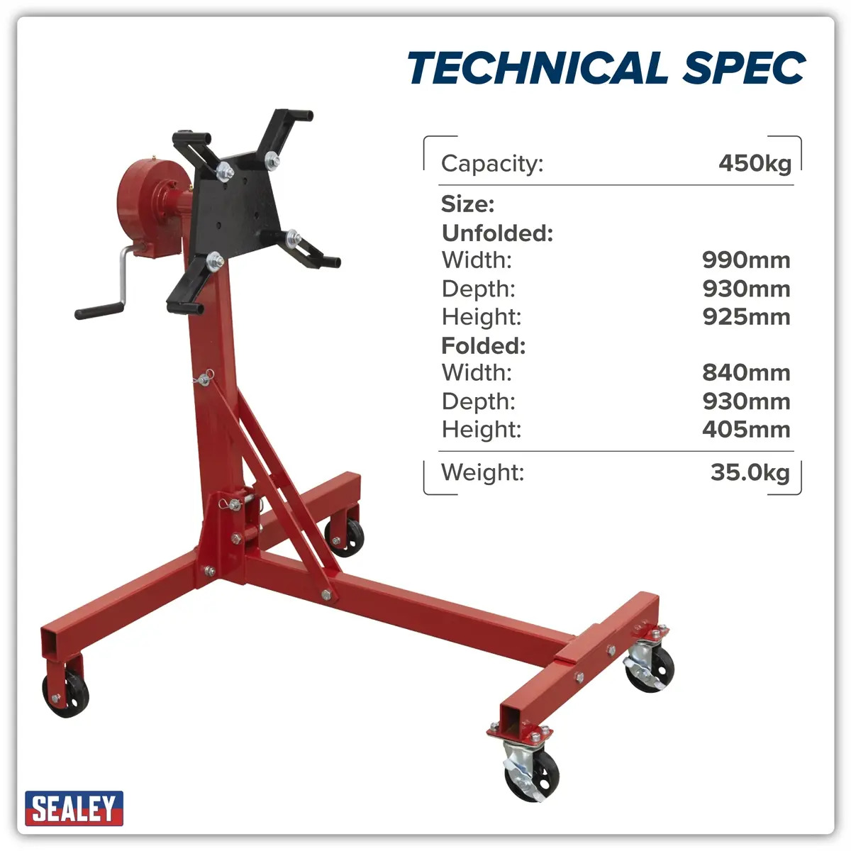 Sealey ES480D Folding 360º Rotating Engine Stand with Geared Handle Drive 450kg Capacity
