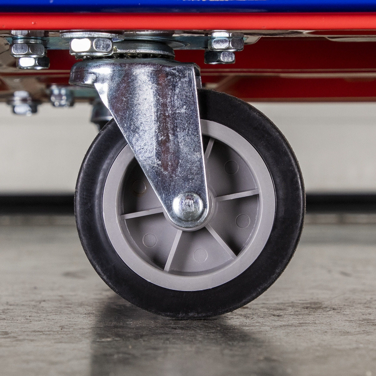 - Rigid platform truck features rubberised deck and bumper strip.