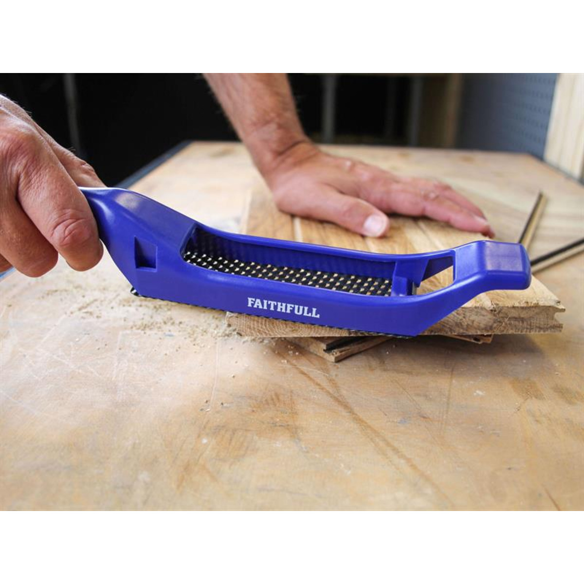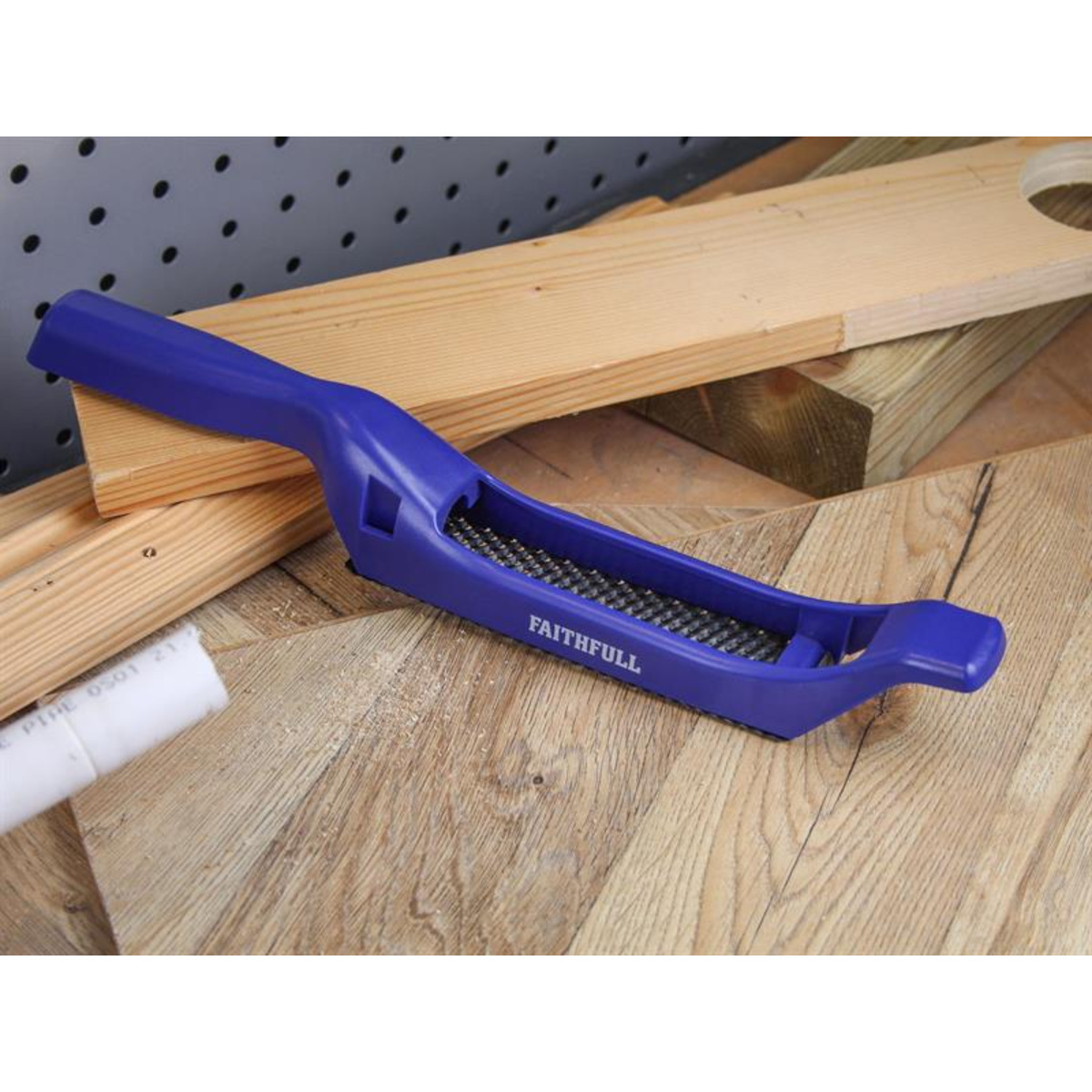The Faithfull Hand Rasp File is suitable for removing material from all types of wood, aluminium, plastics, fibreglass and laminates. It can also be used for plaster and filler removal. The lightweight and strong ABS plastic body design allows this rasp to be used with a single or dual handed operation for fast stock removal. The durable metal rasp blade clicks into place, making its replacement tool-free and fast.