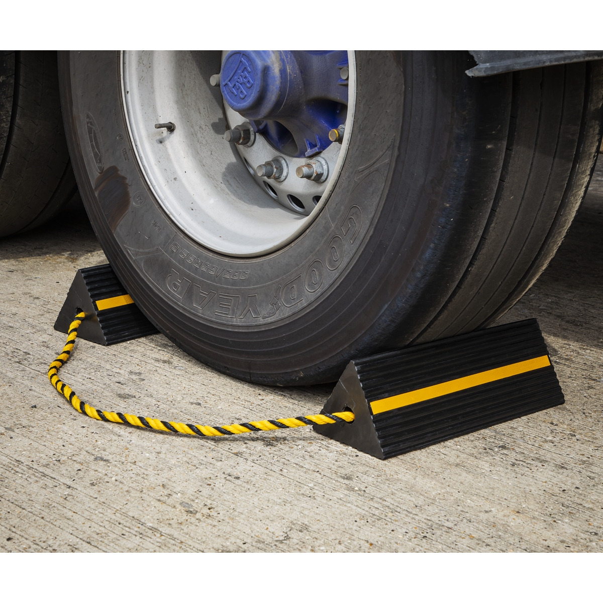 - Chocks supplied on rope for easy storage and removal from underneath wheels.