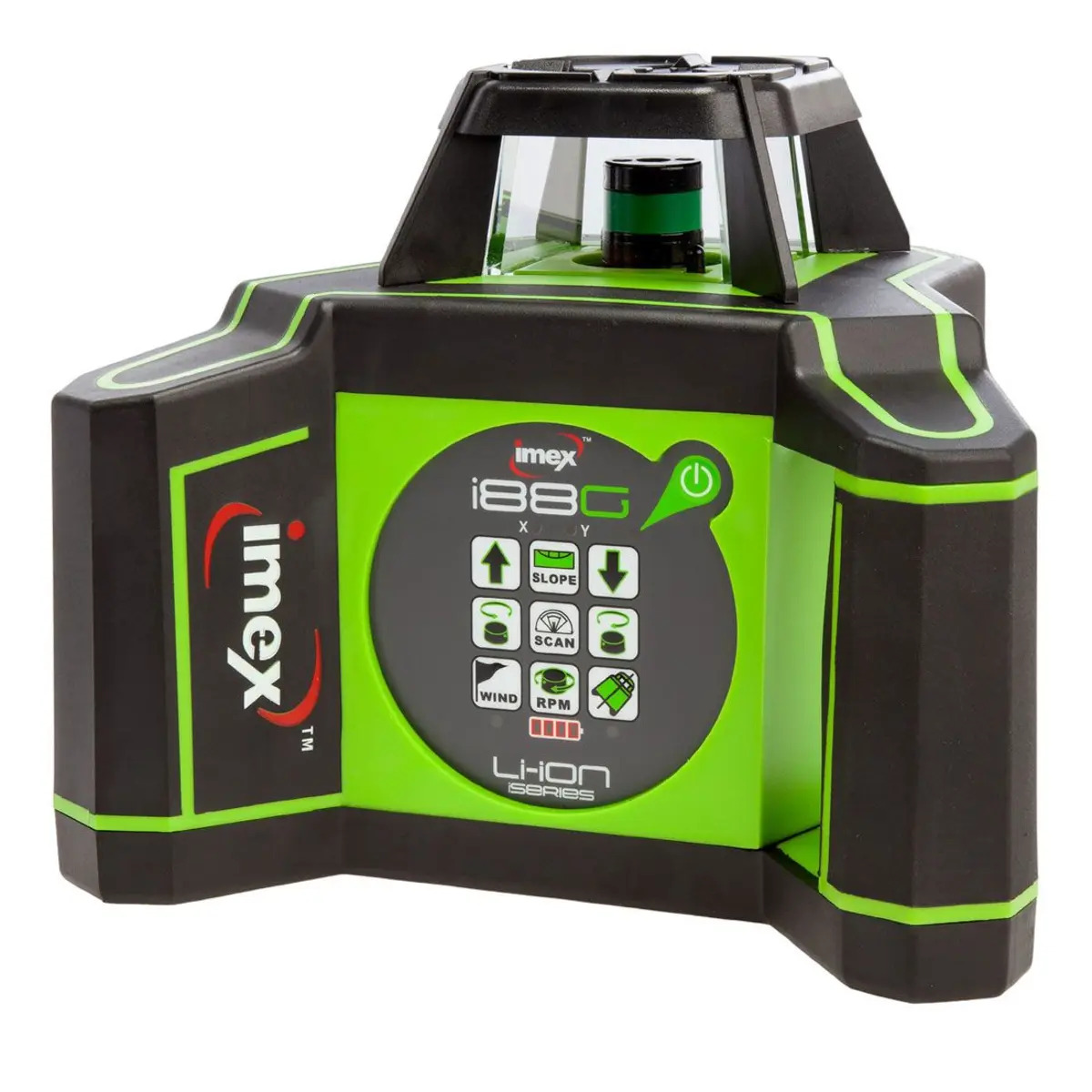 Imex i88G 600m Range Rotating Green Laser Level Unit Inc 2x 9.0Ah Batteries, Charger, Detector & Target Plate In Carry Case