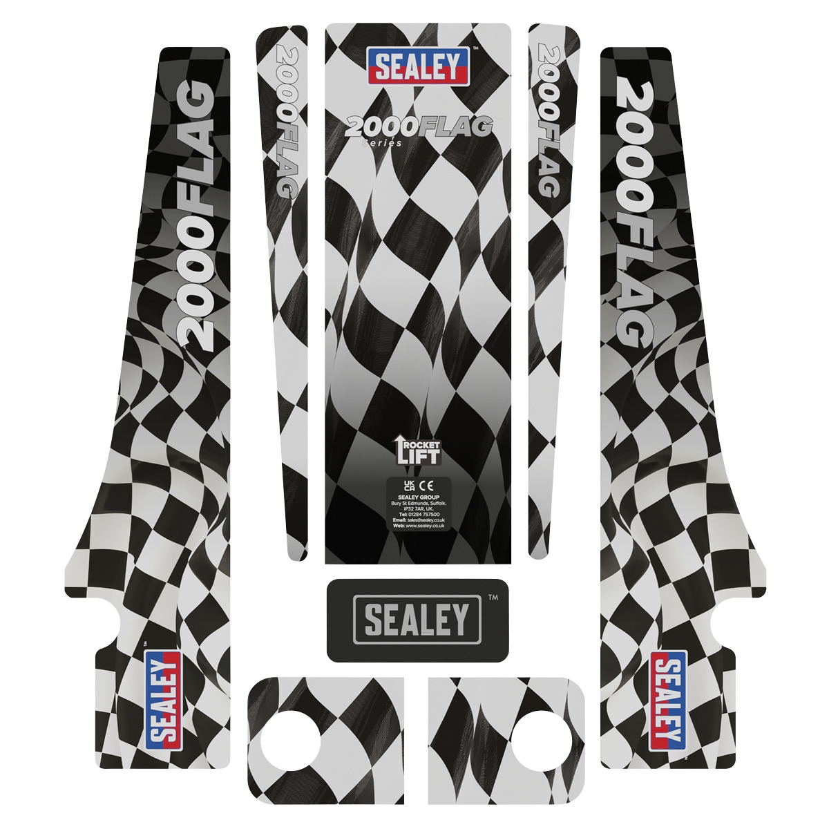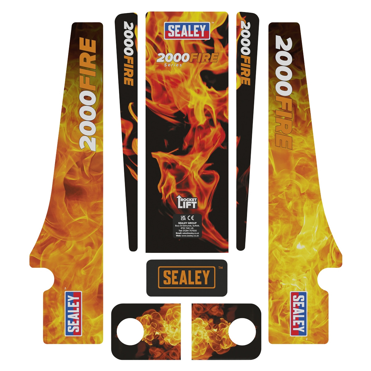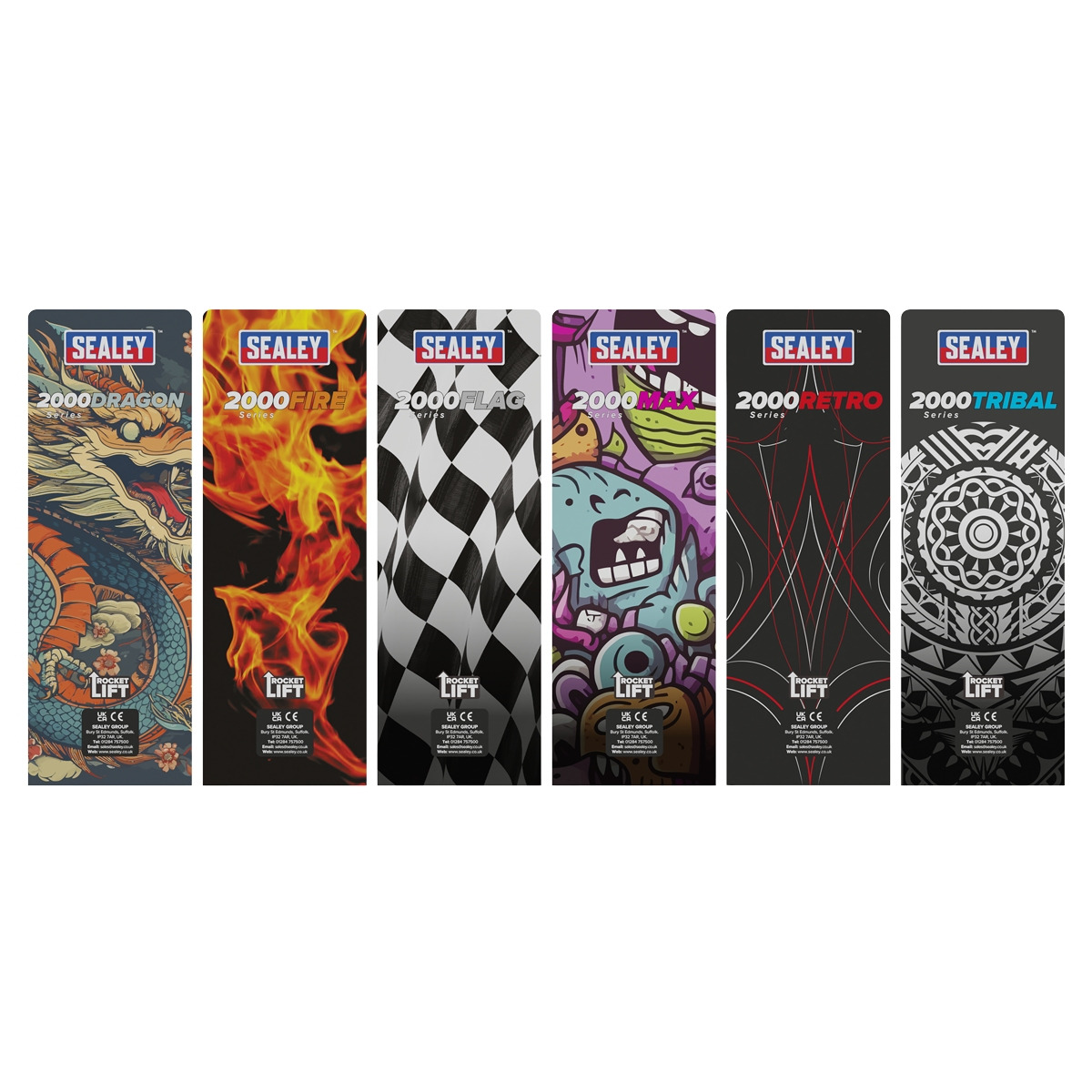CUSTOMISE YOUR OWN JACK - Supplied with six full sets of interchangeable graphics. LOW ENTRY LIFTING RANGE - Minimum saddle height 85mm, maximum saddle height 430mm. TWIN PISTON ROCKET LIFT - Brings the lifting arm straight into contact with the jacking point with minimal pumps. PROFILED LIFTING ARM - Allows low clearance height making it suitable for sports and custom cars. JOINT RELEASE MECHANISIM - Universal joint release mechanism allows safer, more controlled lowering of jack. STEEL CHASSIS - Heavy-duty steel chassis provides stability and endurance. COMPACT AND LIGHTWEIGHT - Most compact and lightweight ALL STEEL Pro 2 Tonne Trolley Jack on the UK market, weighs only 22kg. LONG TWO PIECE HANDLE - Less effort for the operator. HEAVY-DUTY CASTORS AND LARGE SADDLE DESIGN - To ease positioning under the vehicle. IDEAL - For roadside or workshop use.