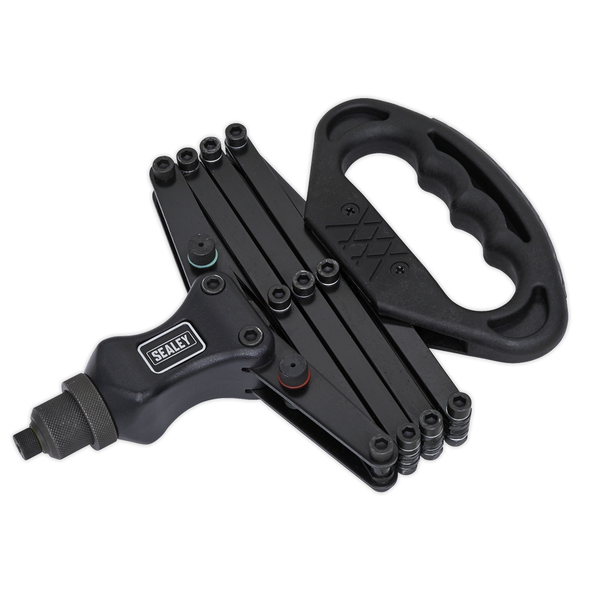 - Aluminium head with steel jaw case and 3-piece jaws for aluminium, steel, and stainless steel rivets up to 6.4mm(1/4").
