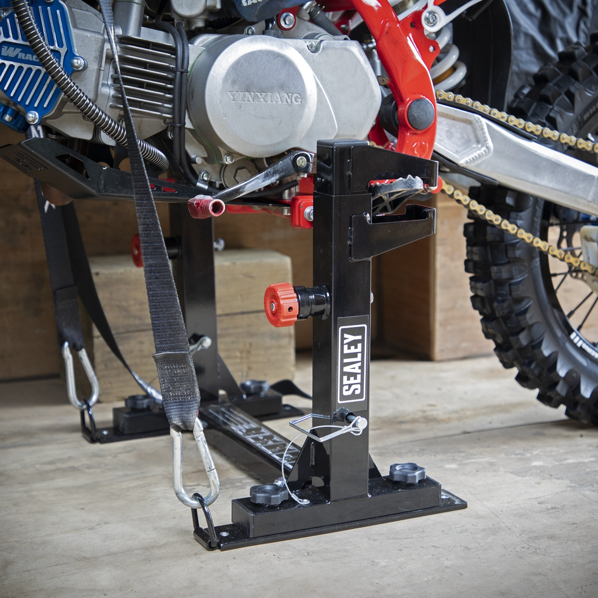 - SECURE - Securely holds your motocross bike on to a trailer or van, with the Fast Lock system, no ratchet straps or wheel chocks required.