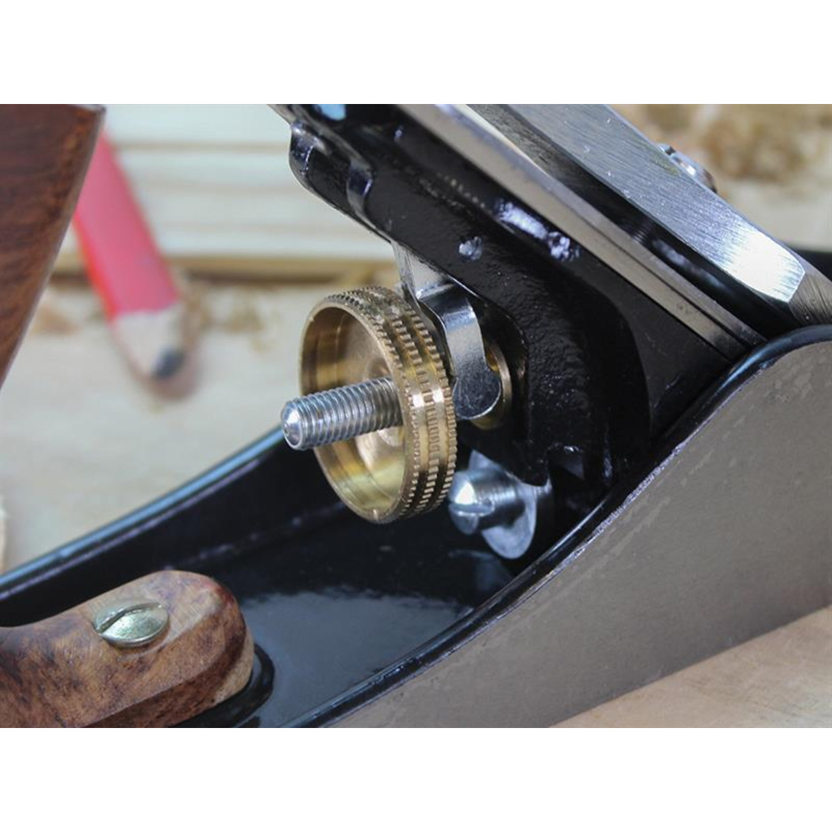 1 x No.4 Smoothing Plane, designed for smoothing and final finishing. Made with a quality grey cast iron body for strength and stability with precision ground base and sides for flatness and squareness. Machined seatings eliminate movement and blade judder. A lever cap with a brass locking screw secures the blade assembly and enables easy release for sharpening. Wooden handles and guidance knobs maximise user comfort. A solid brass blade adjustment nut completes the appeal of these traditional tools.