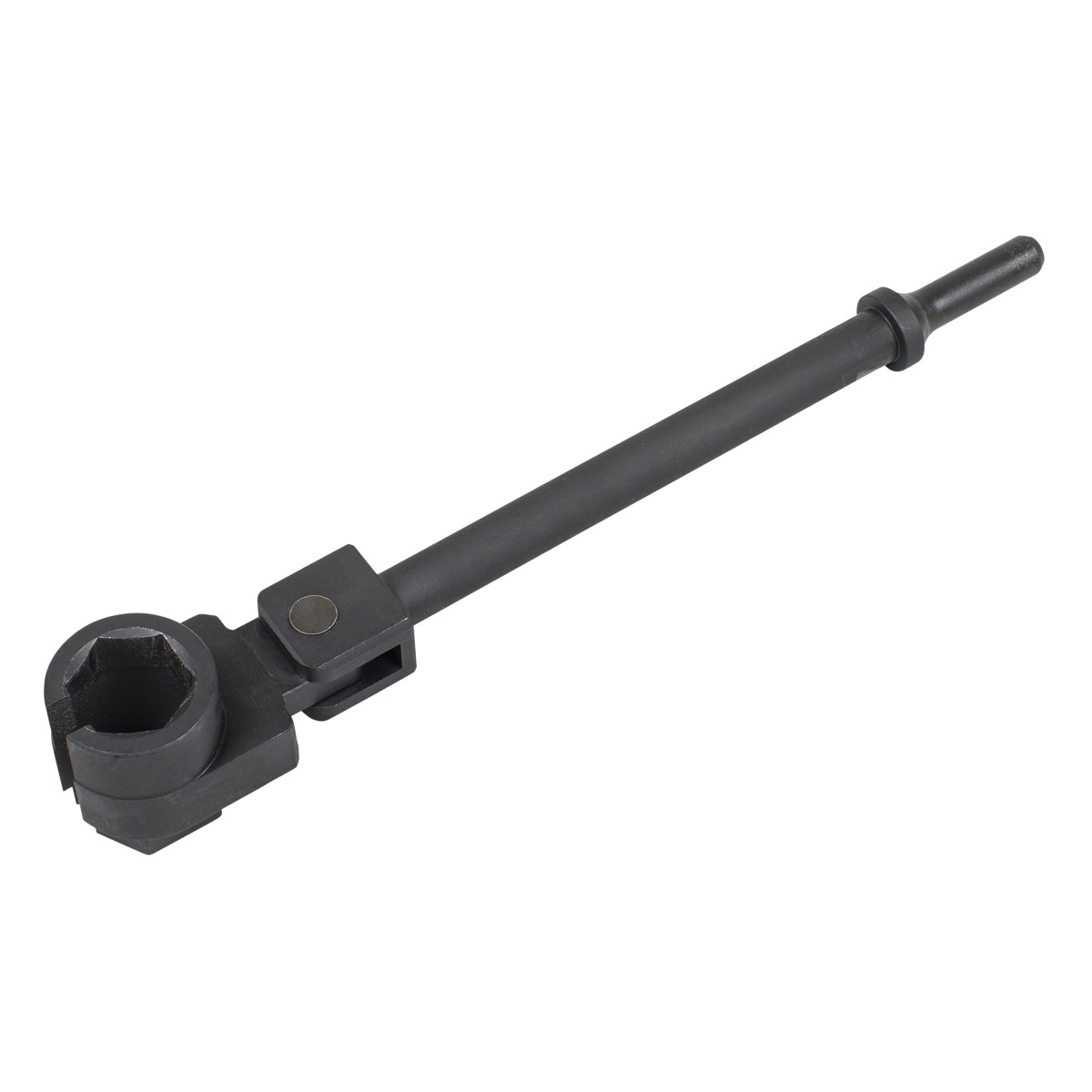 REMOVES SEIZED OXYGEN SENSORS – Designed for use with an air hammer to aid removal of seized or obstructed Oxygen/Lambda sensors. SWIVEL HEAD – Offers easy positioning during installation and operation. CUT OUT DESIGN - Allows the socket to pass easily over wiring for convenient use. UNIVERSAL APPLICATION – Features a 22mm(7/8") internal hex design, suitable for both heated and unheated oxygen sensors. HARDENED AND TEMPERED STEEL – Manufactured from hardened steel for strength and durability. 250MM LENGTH - Provides maximum reach for accessing difficult applications.