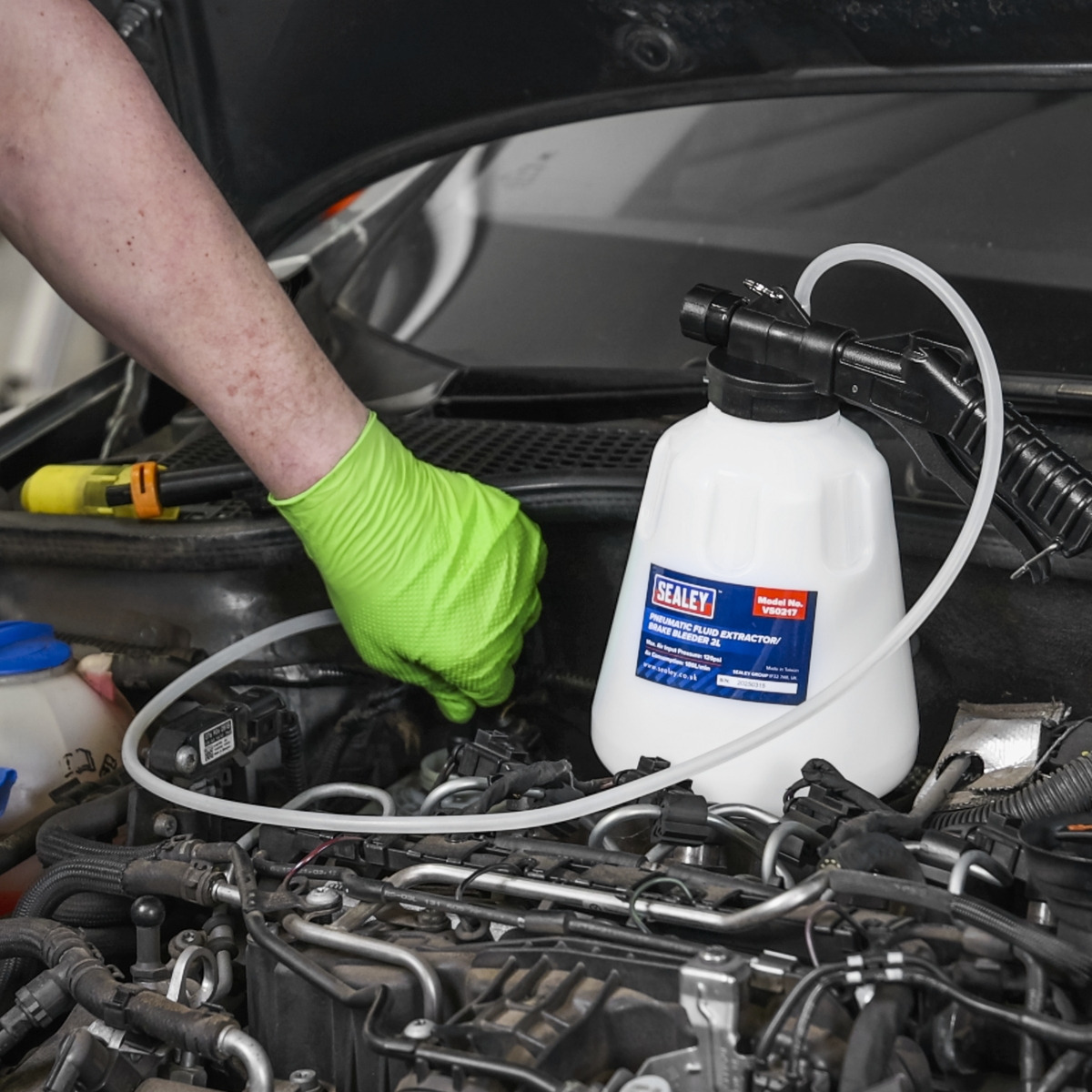 EASY TO USE - One-person operation using standard workshop air supply. LARGE 2L CAPACITY BOTTLE – Ideal for bleeding or full replacement of the brake fluid in the brake system. SIMPLE - Does not require specialised brake reservoir caps. EXTRACTION PIPE INCLUDED - Enabling easy brake fluid extraction directly from the master cylinder, avoiding any spills. UNIVERSAL DESIGN - Designed for most brake bleed nipples and ABS systems on cars, vans and motorcycles.