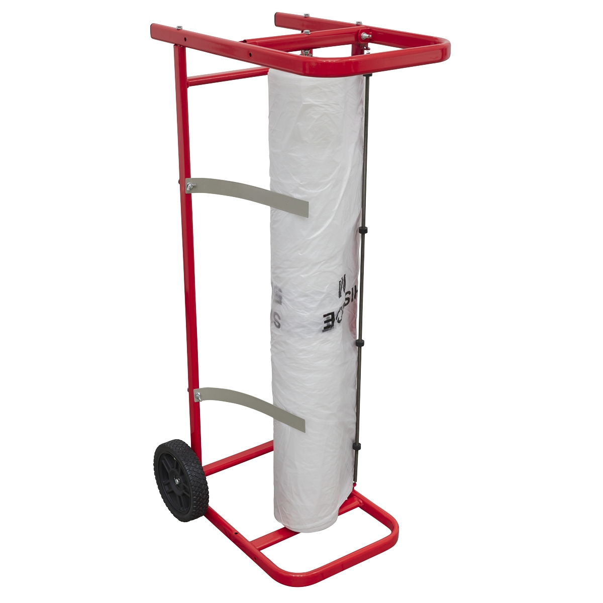 Single roll dispenser accepts 900mm rolls. Can be used either horizontally or vertically. Durable lightweight design with wheels for easy manoeuvrability. Maximum Weight Capacity: 20kg (roll weight). Paper and tapes not included.
