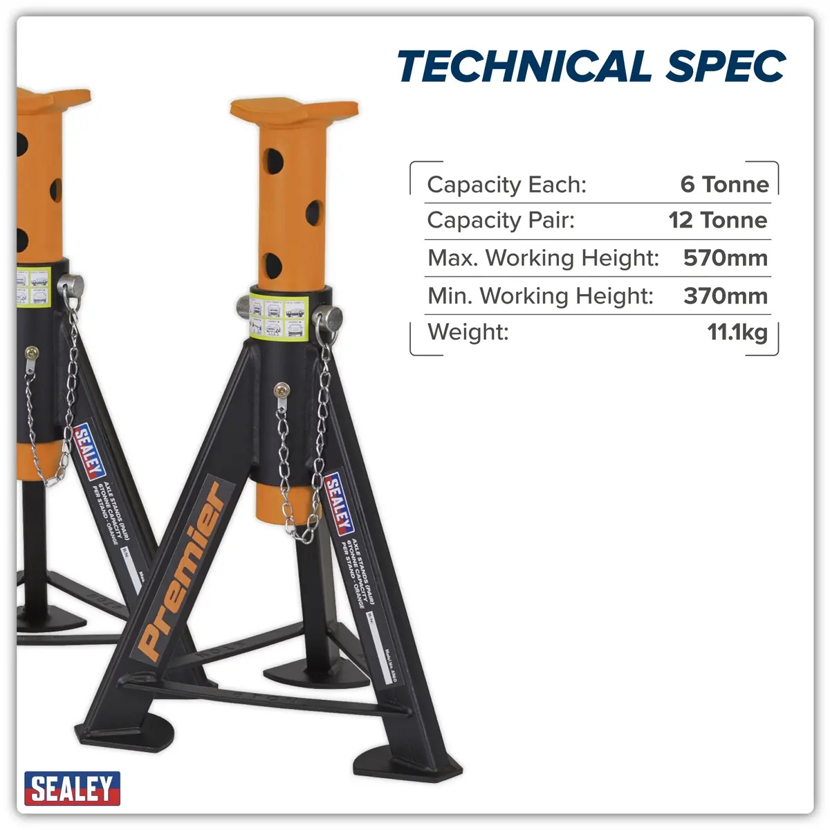 Sealey AS6O Premier Axle Stands (Pair) 6 Tonne Capacity per Stand - Orange
