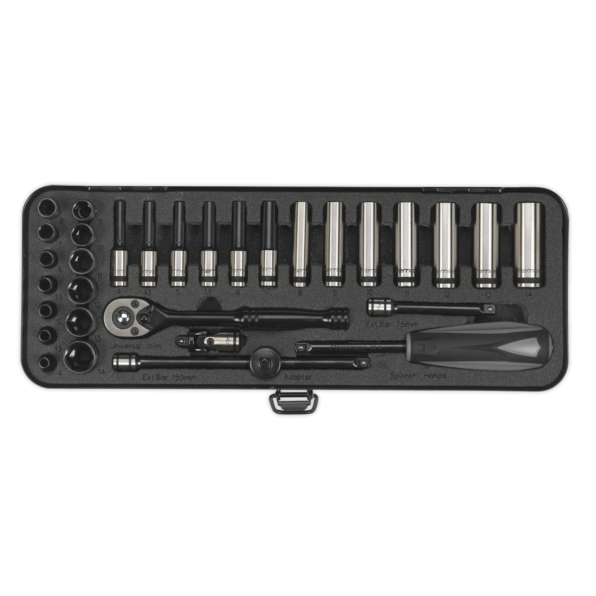 Sealey AK7970 Premier Black Socket Set 1/4"Sq Drive 32pc