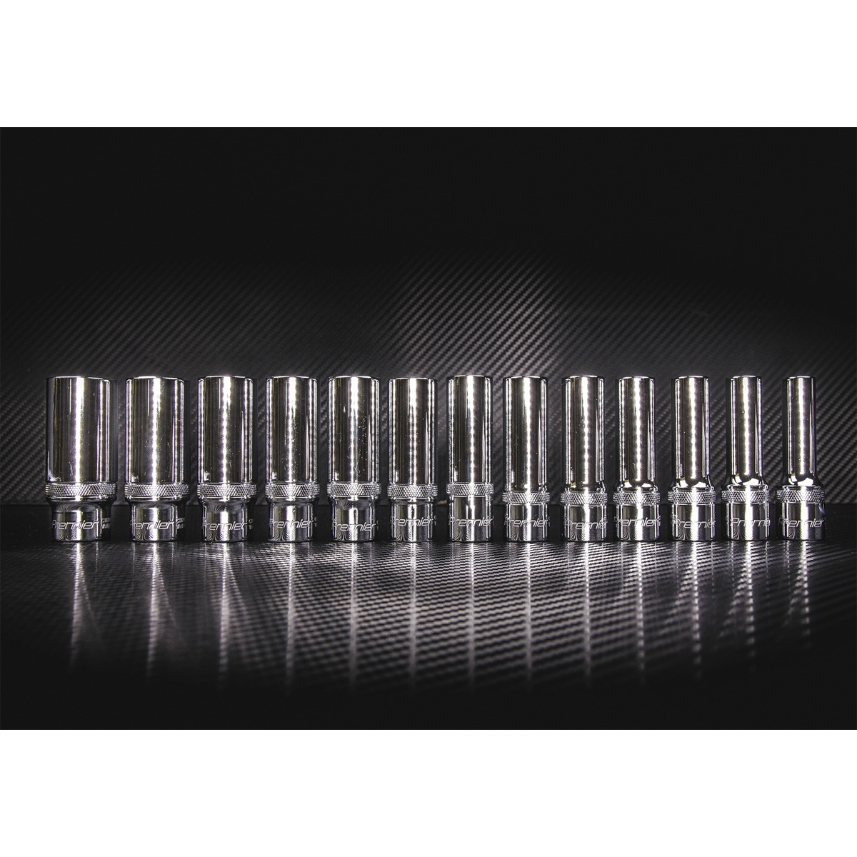 One of a comprehensive range of Premier Hand Tools, suitable for daily professional use. Manufactured from hardened and tempered high grade Chrome Vanadium 6142 steel. Fully polished mirror finish for resistance to corrosion. Features specially machined flutes in the walls of the socket which enable use on up to 85% rounded fasteners. This not only provides added strength but also prevents damage to worn or rusted fixings. Contents: 10, 11, 12, 13, 14, 15, 16, 17, 18, 19, 21, 22, 24mm. Includes knurled ring for extra grip with oily fingers. Supplied on socket rail. Lifetime guarantee*.
