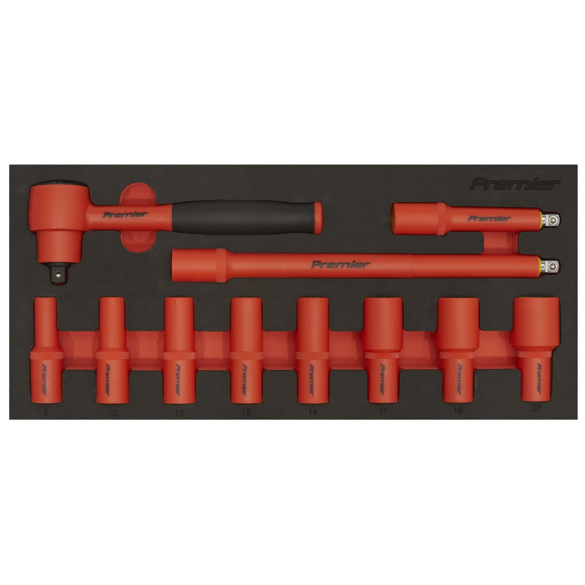 Sealey TBTE01 Premier Insulated Socket Set with Tool Tray 3/8"Sq Drive 11pc - VDE Approved