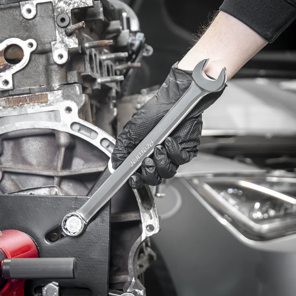 One of a comprehensive range of Premier Hand Tools, suitable for daily professional use. Drop-forged Chrome Vanadium steel spanners. Hardened and tempered with a fully polished, mirror finish. Open-end and WallDrive® ring combination with long slim shaft. Sizes: 20-32mm. Supplied in storage/hanging pouch. Lifetime guarantee*.
