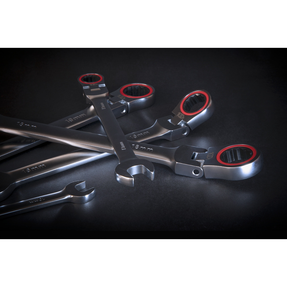 One of a comprehensive range of Premier Hand Tools, suitable for daily professional use. High quality slim style Chrome Vanadium steel spanners. Hardened and tempered with a fully polished micro satin finish. Ultra-smooth 100-Tooth WallDrive® ratchet ring. Flexible ring head is ideal for awkward applications. Ideal for use where space is limited. Sizes: 8, 10, 12, 13, 14, 17, 19mm. Supplied in storage/carry rack. Lifetime guarantee*.