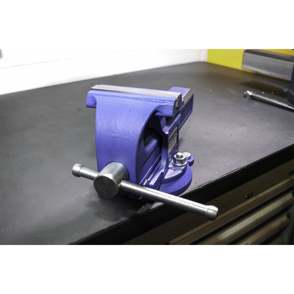 Manufactured to a high standard from SG iron. Swivel base and quick jaw release for versatility. Features include built-in anvil and replaceable steel jaws. Jaw Opening: 125mm.